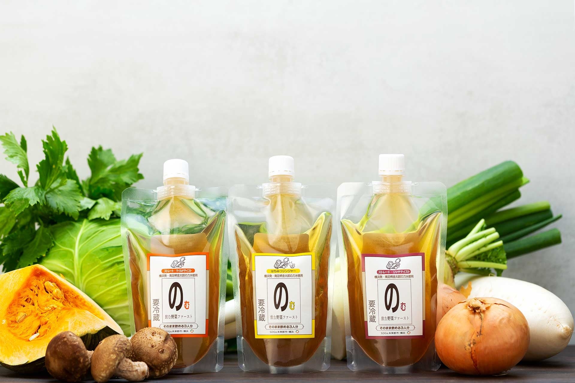 横浜市神奈川区の青果卸業つま正が厳選した8種の野菜を南足柄の名水 ”金太郎の力水” で煮出したオリジナルスープ『飲む野菜ファースト』。