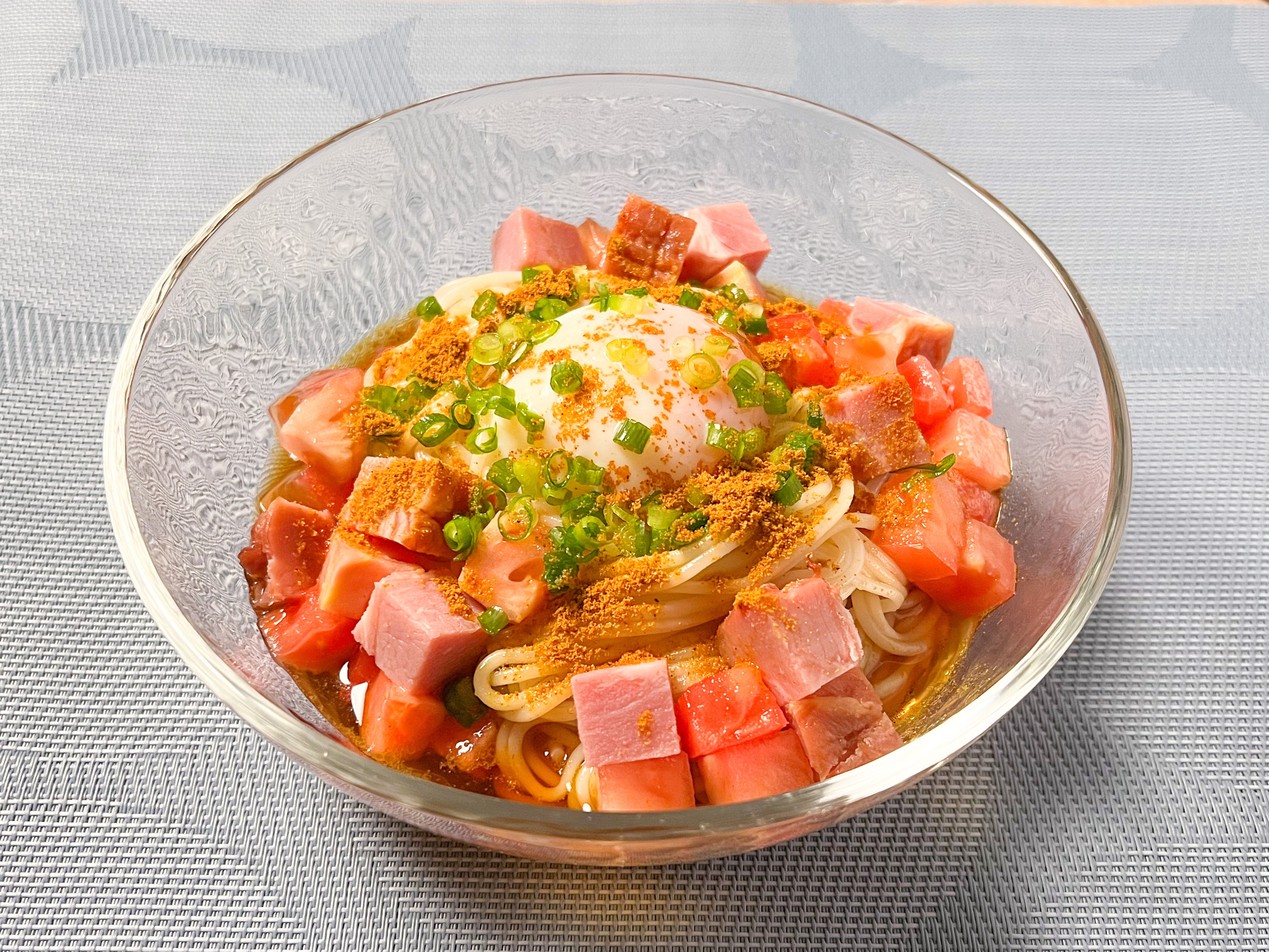 スパイシーCURRY素麺~ゴロゴロ焼豚とトマトトッピング~