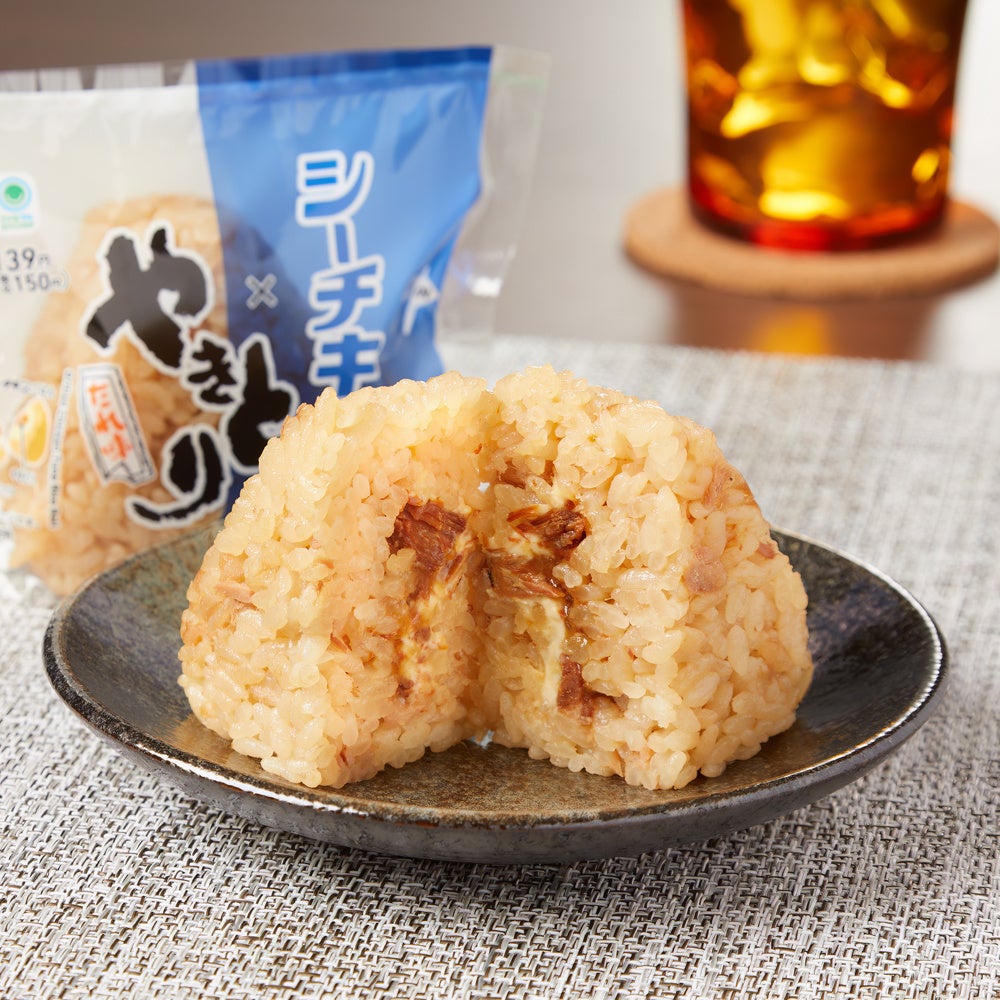 【内容】醤油とだしで炊き上げたごはんに、はごろもフーズの「シーチキン」を混ぜあわせ香り良く仕立てました。ホテイフーズの「やきとり(たれ味)」とからしマヨを中具に入れることで、相性よくやみつきになるおむすびです。