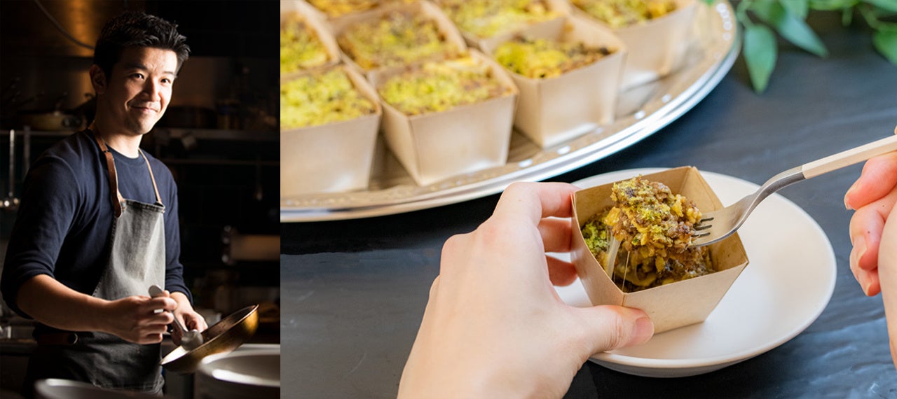 今回のローンチに合わせて用意した「ラザニア」は、ミシュラン三ツ星[Jean-Georges本店]出身の米澤文雄氏が監修しました。