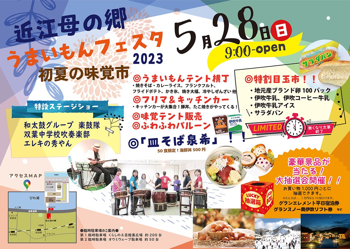 【5月28日(日)新鮮野菜やブランド卵を集めた「道の駅 近江母の郷 うまいもんフェスタ2023」を滋賀県米原市の「道の駅 近江母の郷」にて初開催!!】