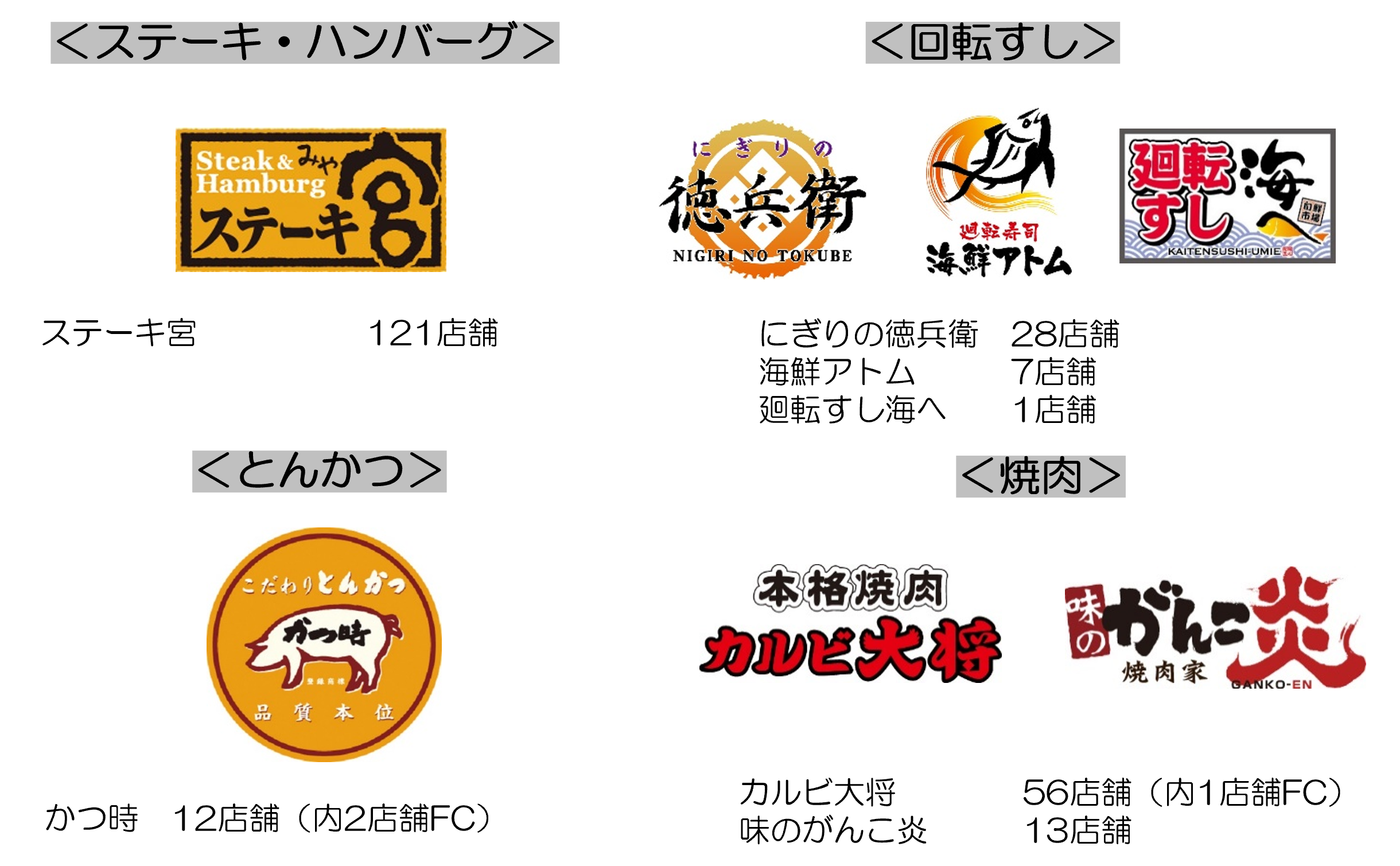 対象店舗:ステーキ宮、カルビ大将、がんこ炎、かつ時、にぎりの徳兵衛、海鮮アトム、海へ