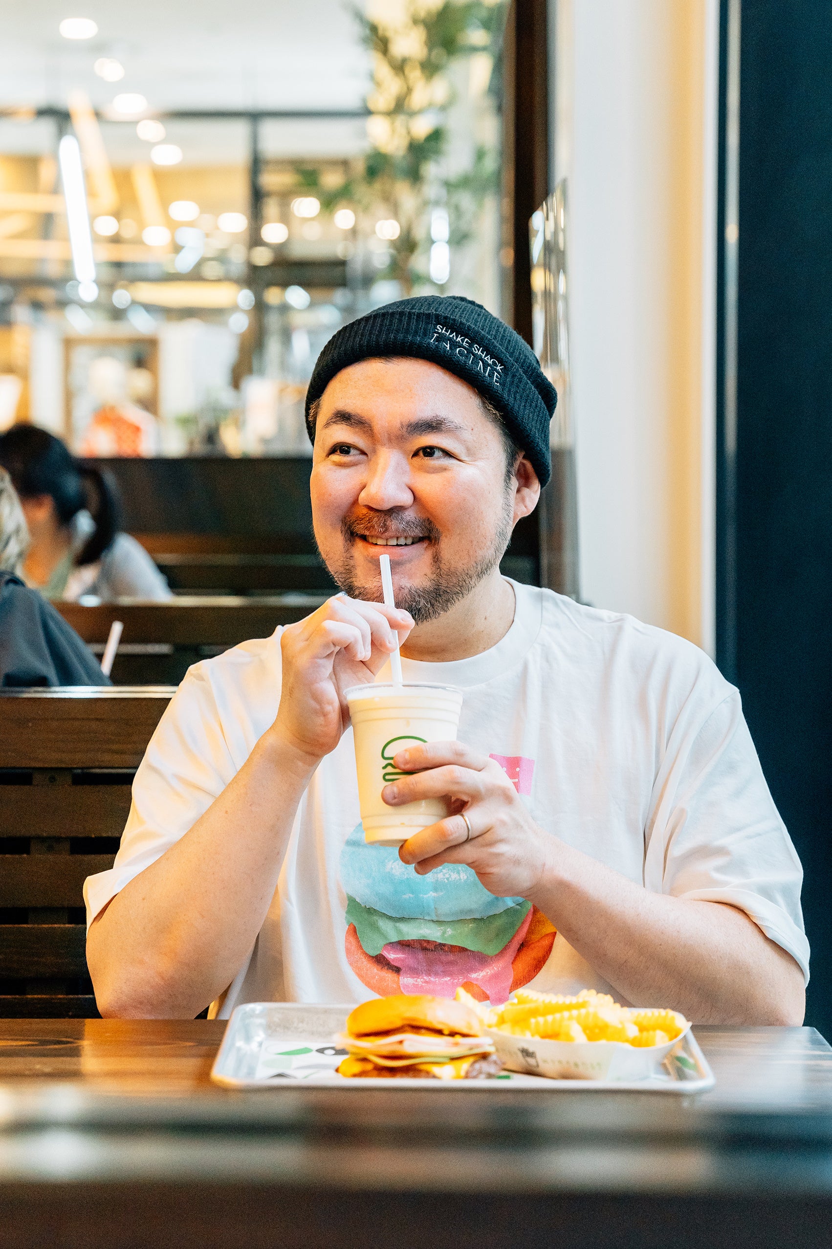私にとって、シェイク シャックのように誰でも楽しめるようなブランドとのコラボレーションは初めての経験になります。普段自分のお店に来ていただいているお客様とはまた違う方々に食べていただける機会になりますので、本当に様々な事を考えながら今回のメニューを作りました。そのため、大阪独自の食文化を取り入れるなど色々と試みましたが、最終的にはシンプルに自分の味と、シェイクシャックの素材を引き立たせる味のソースや、面白い食感のトッピングを掛け合わせました。また、過去のコラボメニューにはないカラフルな彩りと和のフレーバーが融合したテイストを選んでいます。自分もシェイクシャックが好きでよく食べるのですが、お客様が今までに味わった事のないバーガーをイメージして作っているので、皆様が食べた瞬間の反応を今からとても楽しみにしています。