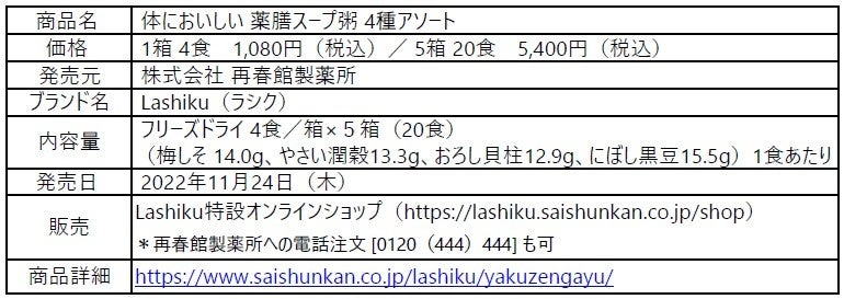 ■商品詳細ページ https://www.saishunkan.co.jp/lashiku/yakuzengayu/