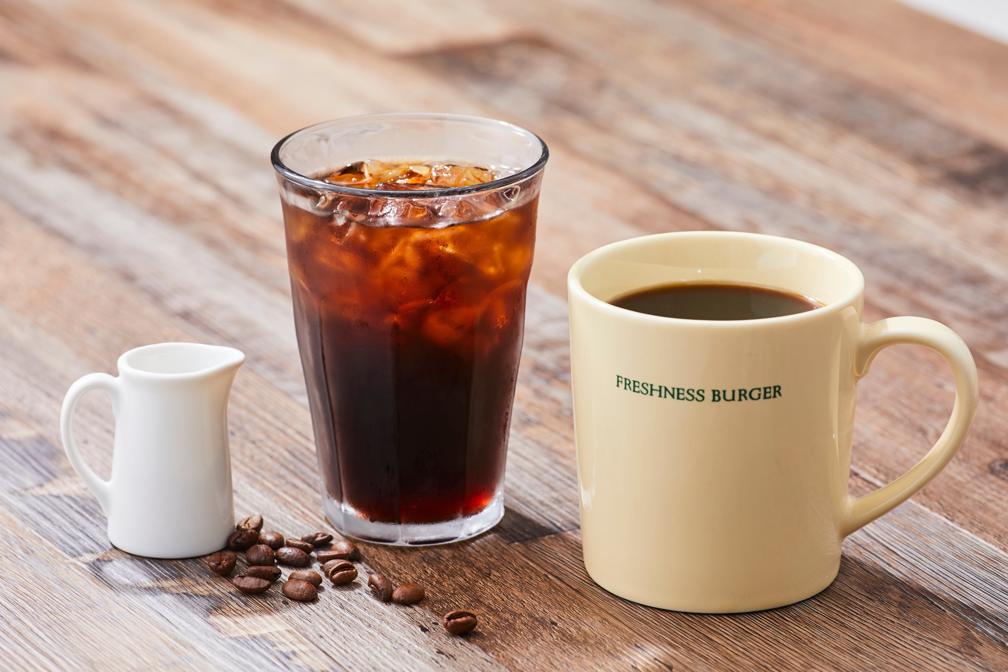 フレッシュネスバーガーは「大人がくつろげるバーガーカフェ」をコンセプトとし、こだわりのハンバーガーだけではなく、アラビカ種100%のコーヒー豆を使用したドリップコーヒーや、フルーツたっぷりのフレッシュドリンクなど、飲み物にもこだわり、カフェタイムもお楽しみいただけます。