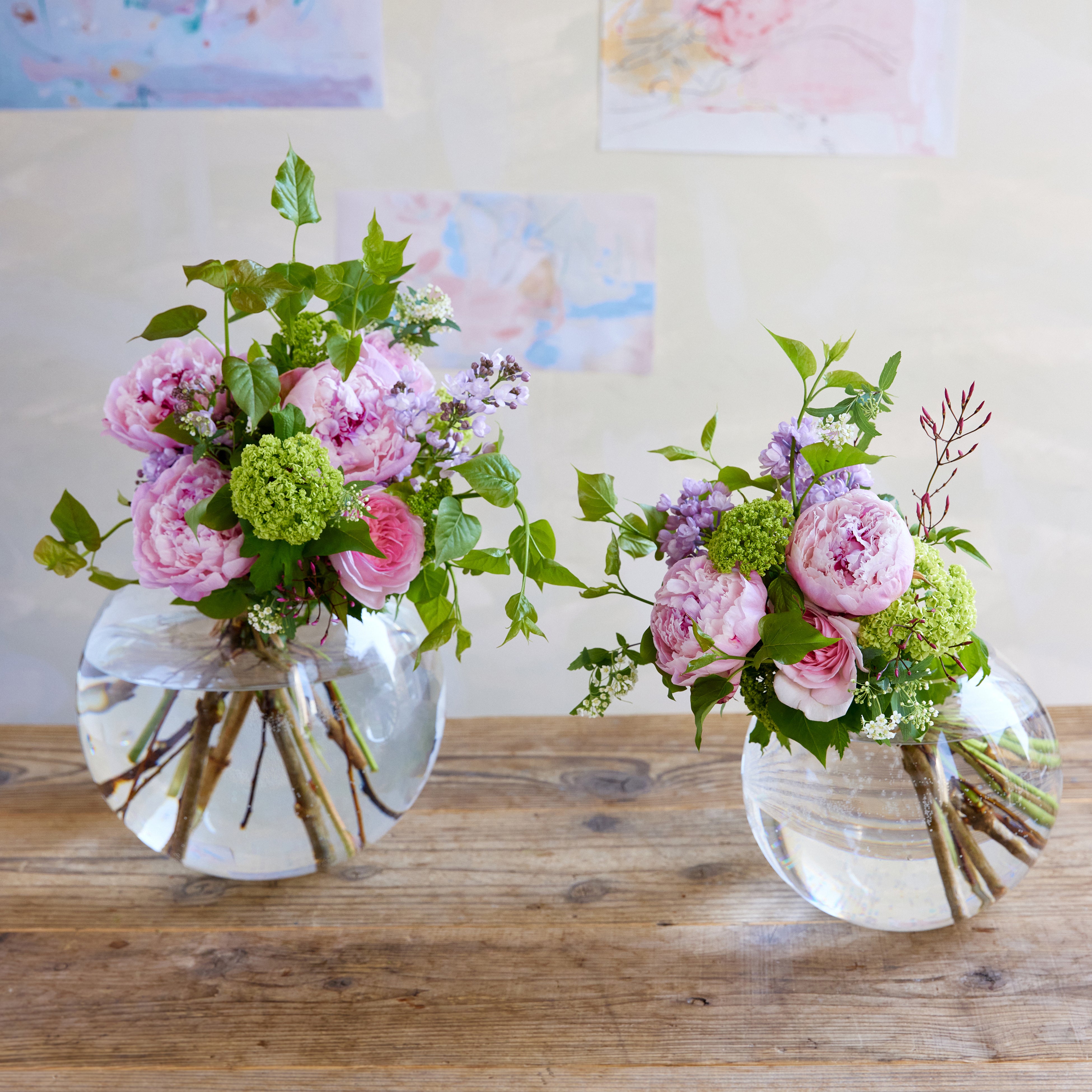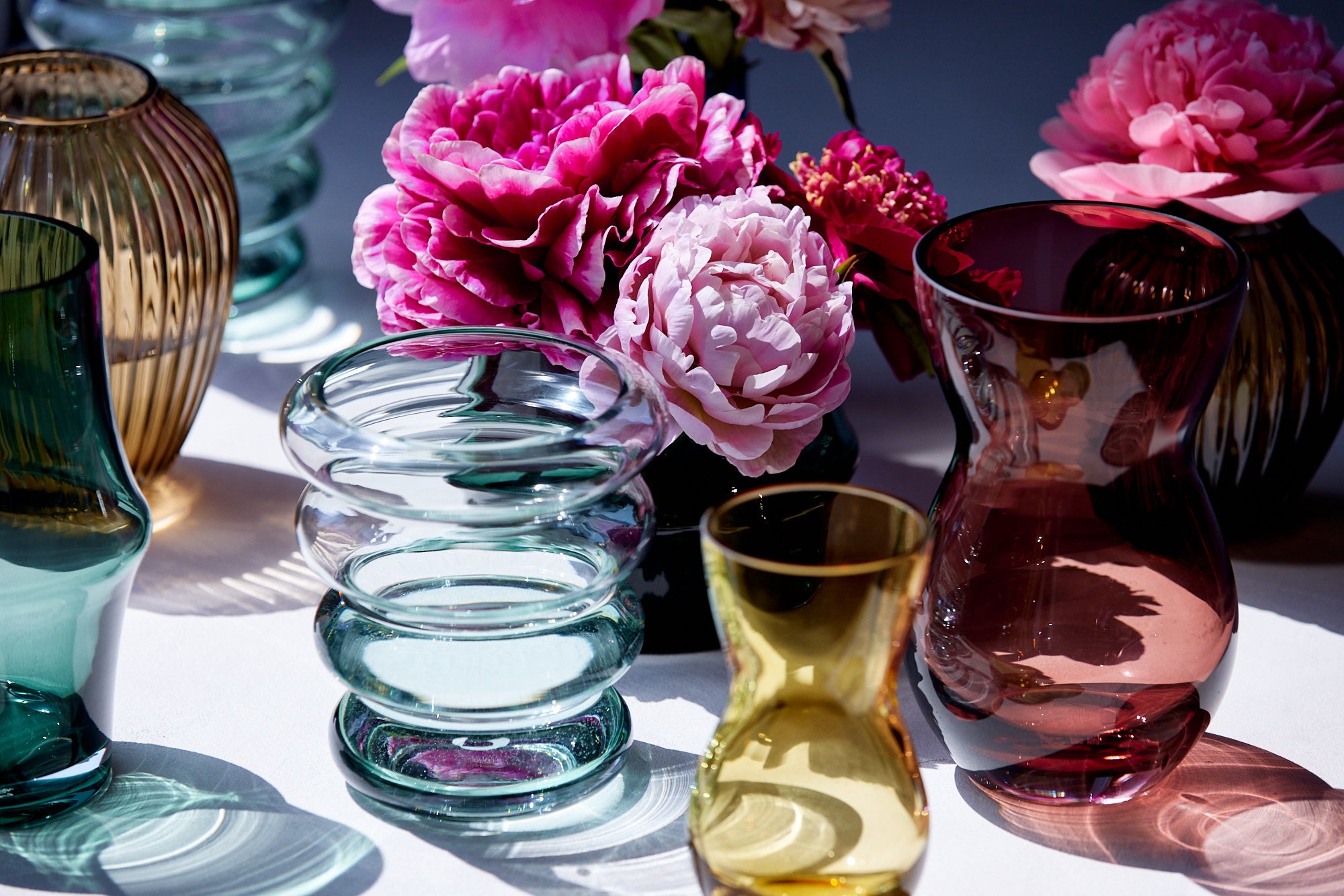フローリストがこだわり抜いてセレクトしたフラワーベースがおよそ1,000種揃う、青山フラワーマーケット 2階にある「フラワーベースギャラリー」。今回の青山シャクヤク祭りに合わせて、シャクヤクが映える洗練された北欧のガラスベースを集めて販売します。