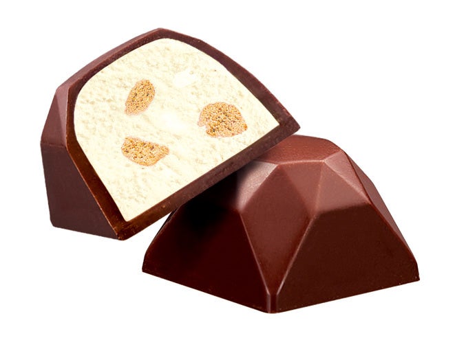 ・ロレーヌ産岩塩を使用した塩ミルククリームに、ホワイトクランチとプレーンビスケットを入れミルクチョコで包んだ大粒チョコレート