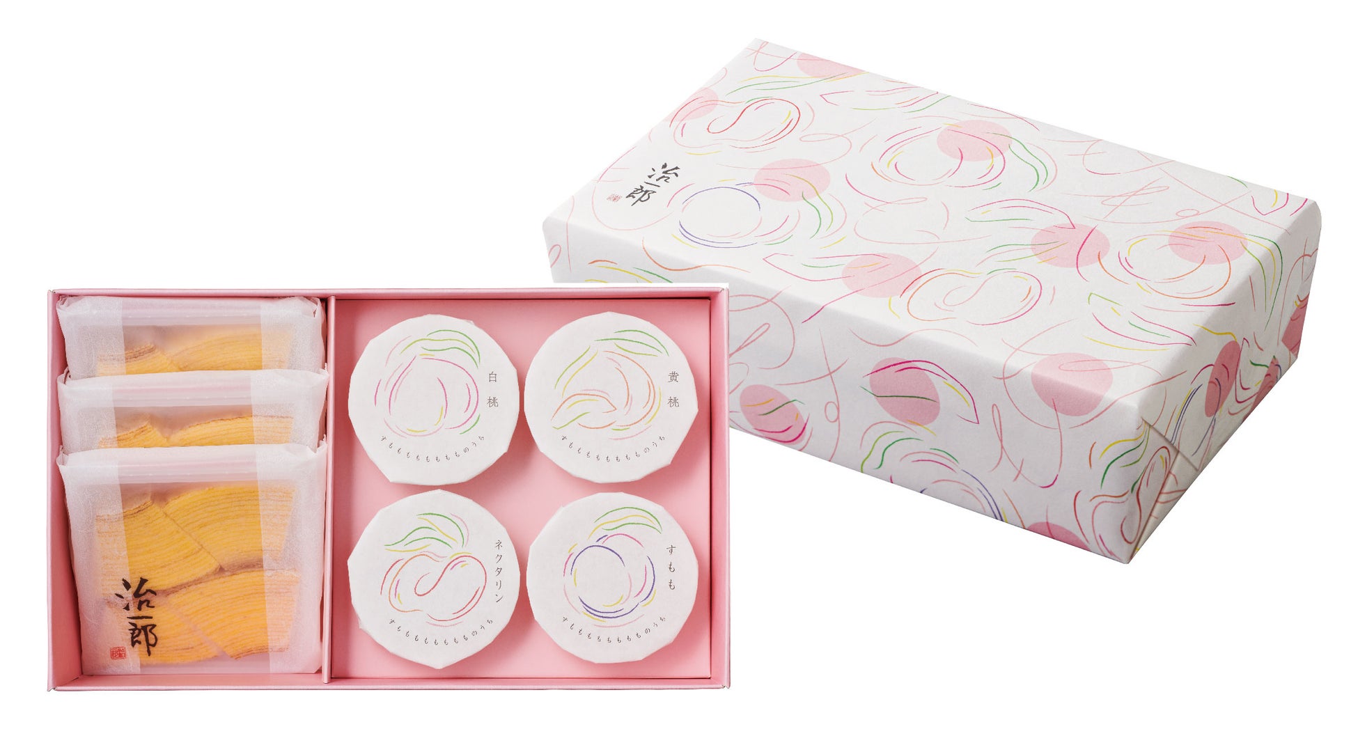 毎年夏に販売している治一郎のゼリー商品。今年は、昨年好評いただいたゼリー食べくらべの第2弾として“もも”ゼリーを販売いたします。テーマは“すもももももももものうち”。甘さや香り、見た目や食感も異なる4種類のゼリーをご用意しました。柔らかくなめらかで強い甘みが特徴の「白桃」、食感はしっかりとして甘さは抑えめの「黄桃」、つるんとした見た目で甘みと酸味のバランスがよい「ネクタリン」、そして本当は桃ではない「すもも」を仲間に。それぞれの果実の個性を活かすため、洋酒にもこだわり、深みのある味わいに仕上げています。白桃と黄桃は大粒の果肉をごろっと入れ、食感の違いもお楽しみいただけます。夏の暑い時期にも美味しく召し上がっていただけるよう、つるんとした口当たりに仕上げました。