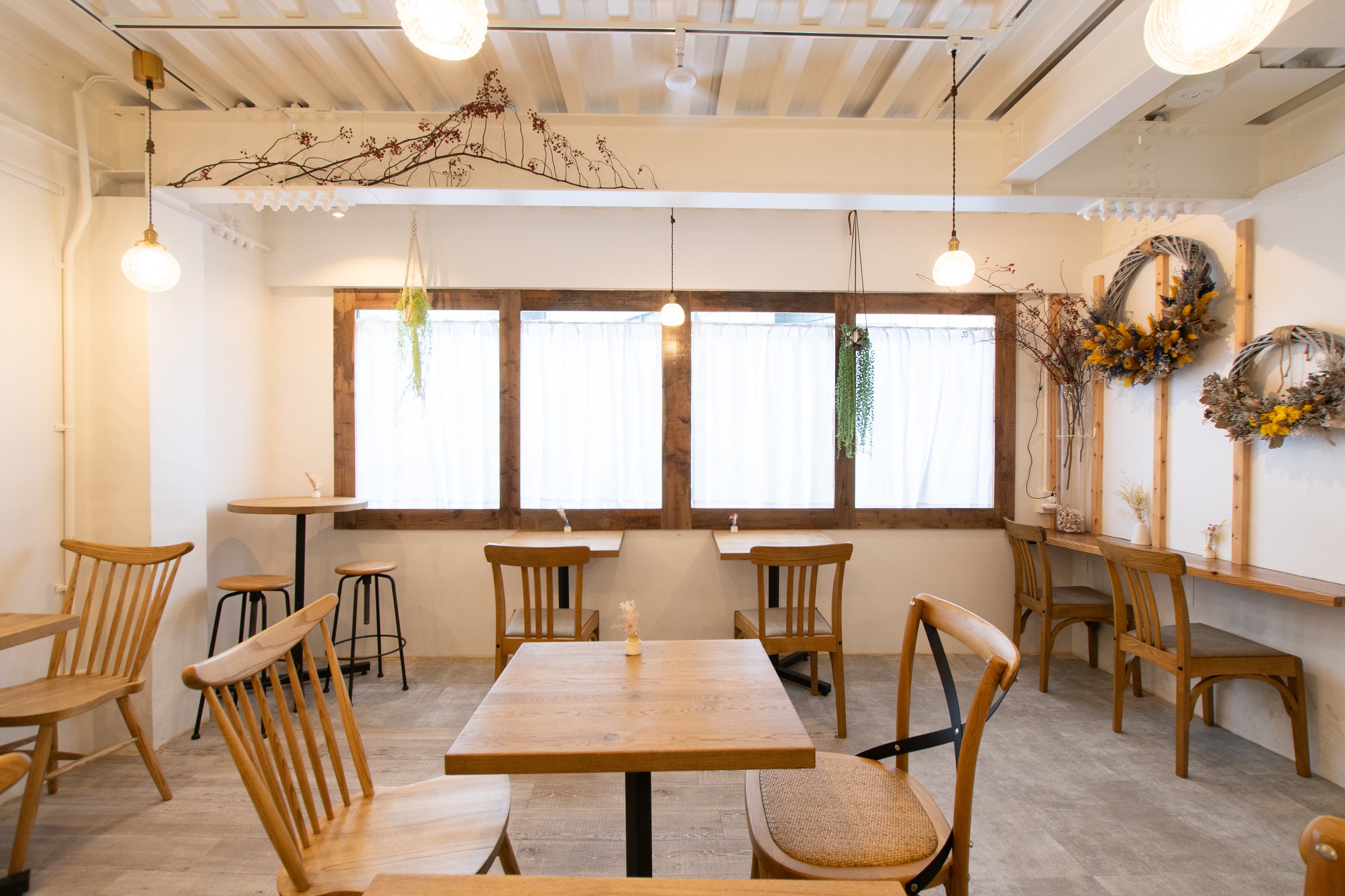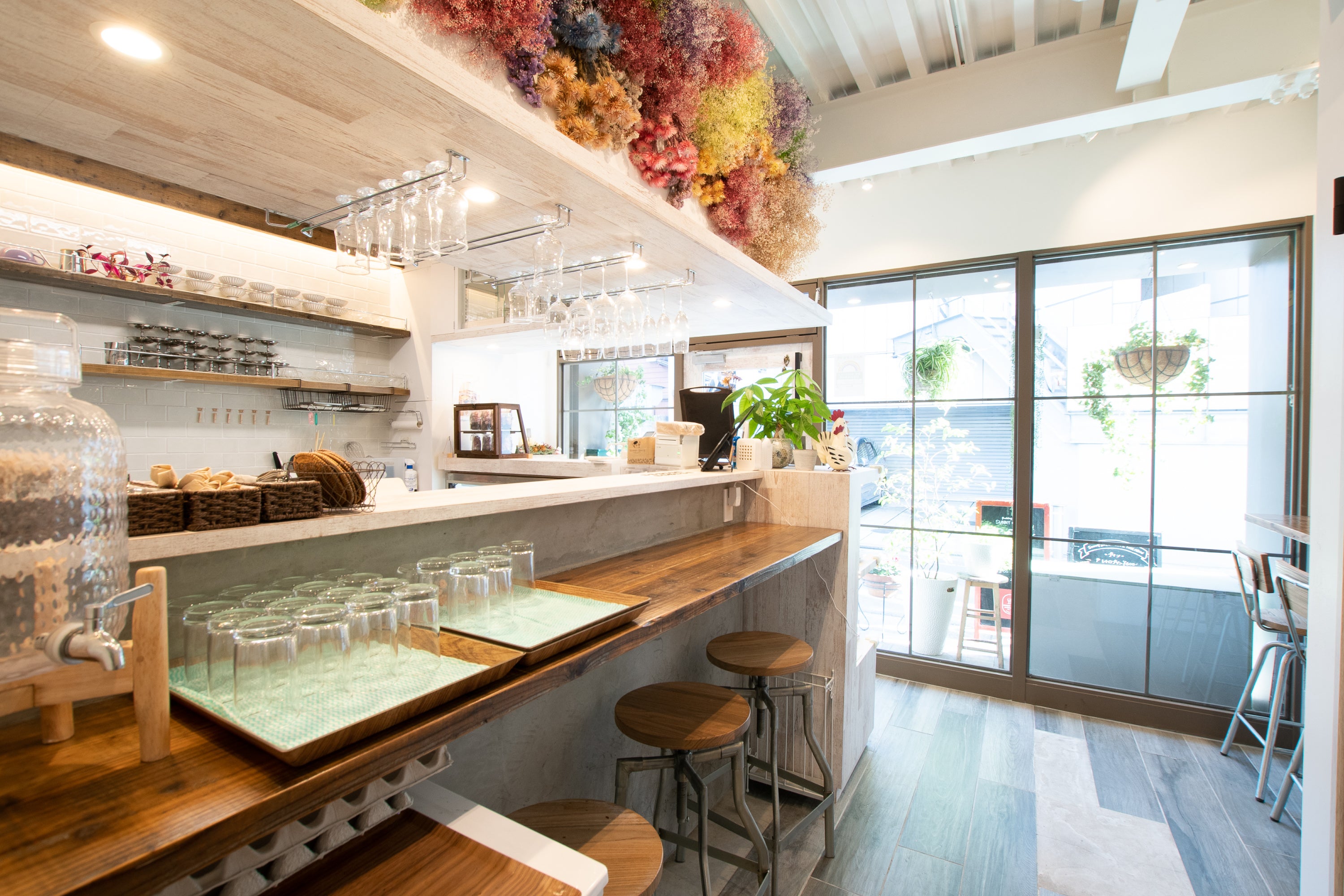 都会の慌ただしさの中でも癒しを与えられる花や緑の空間を作りました。店内のドライフラワーを中心とした