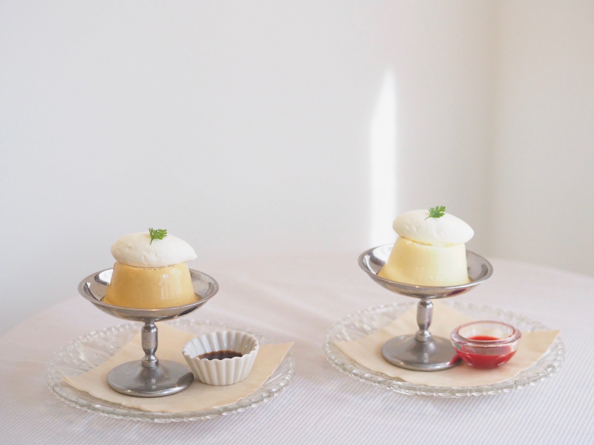 2種類のたまごを使い分けたレトロプリン・白いプリンはそれぞれ味わいが異なり、素材の味をお楽しみいただ けます。