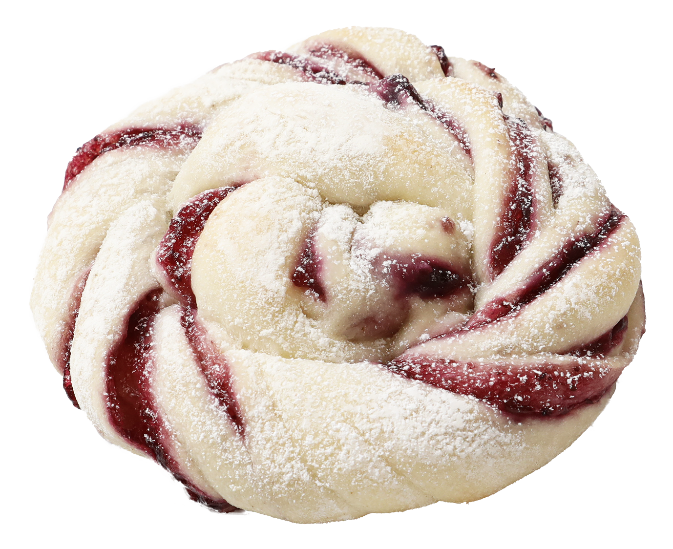 “もっちりしっとり”食感が楽しめる、アンティーク自慢の『雲の上のふわもち食パン』の生地を使用しました。生地にブルーベリージャムを折り込み、ロール型に焼き上げたシンプルな菓子パン。シンプルな味わいだからこそ、ブルーベリージャムの甘さが際立ちます。