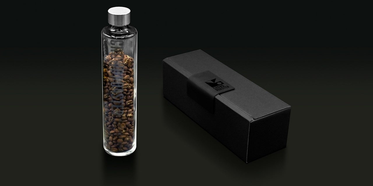 レーザーエッジングで農園と銘柄、セクション名を刻印したガラスボトルにコーヒー豆を封入してお届けいたします。今回しか手に入れることのできないスペシャル仕様です。