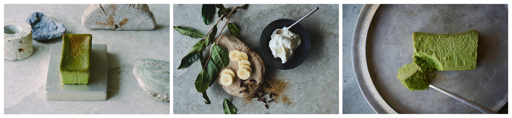 抹茶の上質な旨味と香りに、バナナやバニラを組み合わせた抹茶フレーバー。生地の中には、抹茶が放つハーブの香りと相性の良い山椒と、抹茶のスパイシーさや僅かなスモーキーさを引き立てるクローブを加え、立体感のある香りを創り出しました。おすすめの食べ方は全解凍。口いっぱいに広がる抹茶の旨味や香りをお楽しみください。