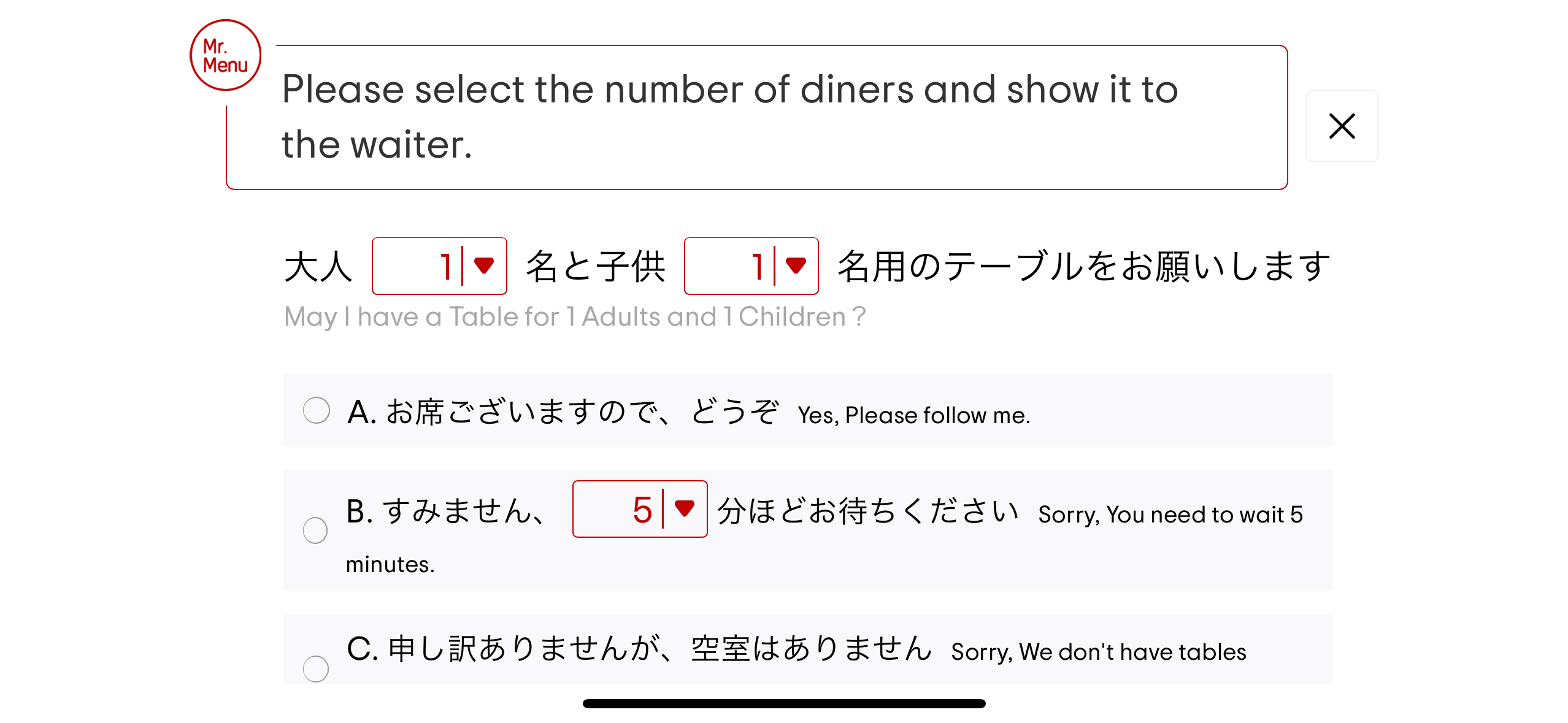 訪日観光客向けのアプリMr.Menuは、多言語メニューの用意がある飲食店のみ検索できるアプリになっております。