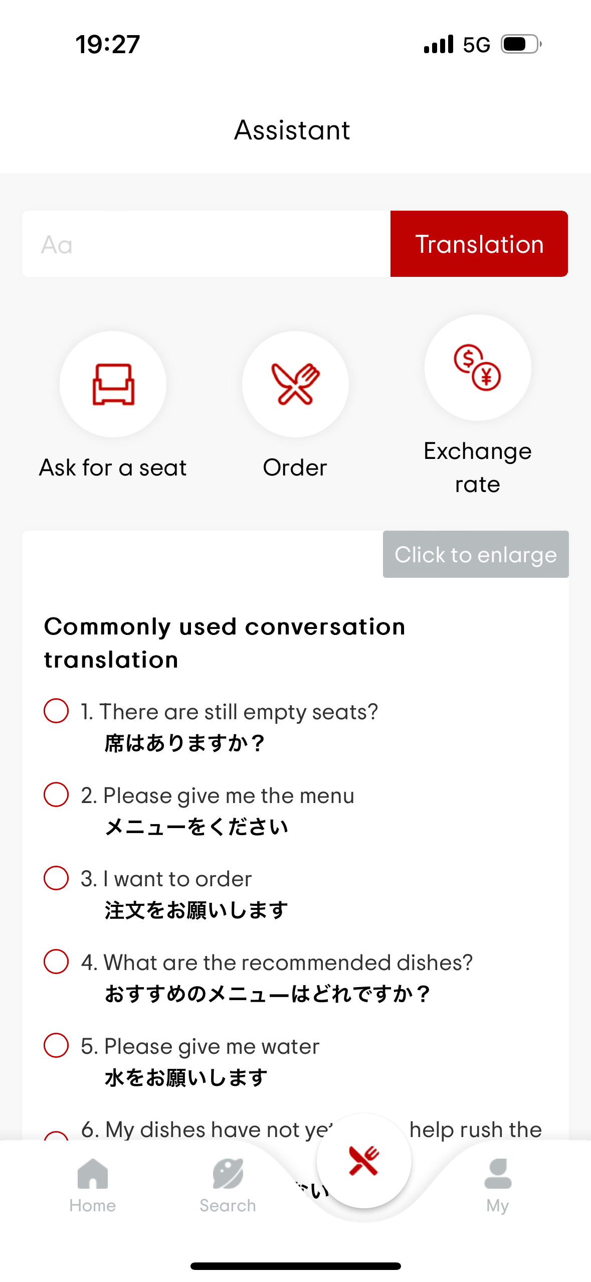 ③アプリ内には、飲食店でよく使う指差し会話ツールや外貨計算ツールも用意。訪日観光客の「困った」を解決