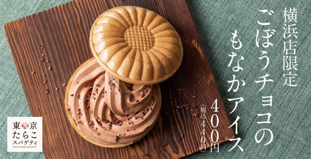 進化系たらこスパゲティの専門店「東京たらこスパゲティ」が2023年6月30日(金)にFOOD&TIME ISETAN YOKOHAMAへオープンいたします。オープンを記念して、横浜店限定の「ごぼうチョコのもなかアイス」を販売いたします。きんぴらごぼうや筑前煮など和食に多く使われる食材のごぼうと、ヨーロッパ発祥のチョコレートを合わせ、和洋折衷のスイーツに仕上げました。ごぼうの土や木の皮に似た独特な香りと、チョコレートの原料であるローストしたカカオの香りが意外にも相性抜群です。苦味と食感のアクセントにカカオニブを加え、もなかにはさみました。横浜店でしか食べられないオリジナルスイーツを楽しみにお待ちください。