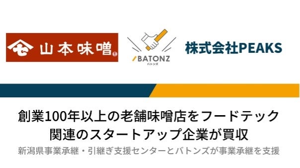 京都府でフードテック関連のスタートアップ企業を経営する金崎努様は、新潟県上越市で大正時代から100年以上続く老舗の味噌及び味噌漬類の製造販売を営む山本味噌を譲り受けました。