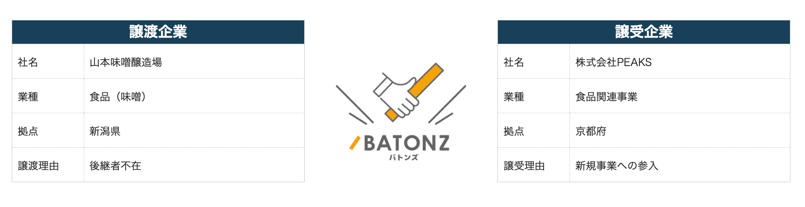 山本味噌醸造場様からは2020年10月に初めてご相談をいただきました。当初は新潟県事業承継・引継ぎ支援センター内でマッチングを進めておりましたが、2022年4月にマッチング相手の探索を強化する目的でバトンズを紹介させていただいたところ大変興味をお持ちいただき、今回のご縁につながりました。