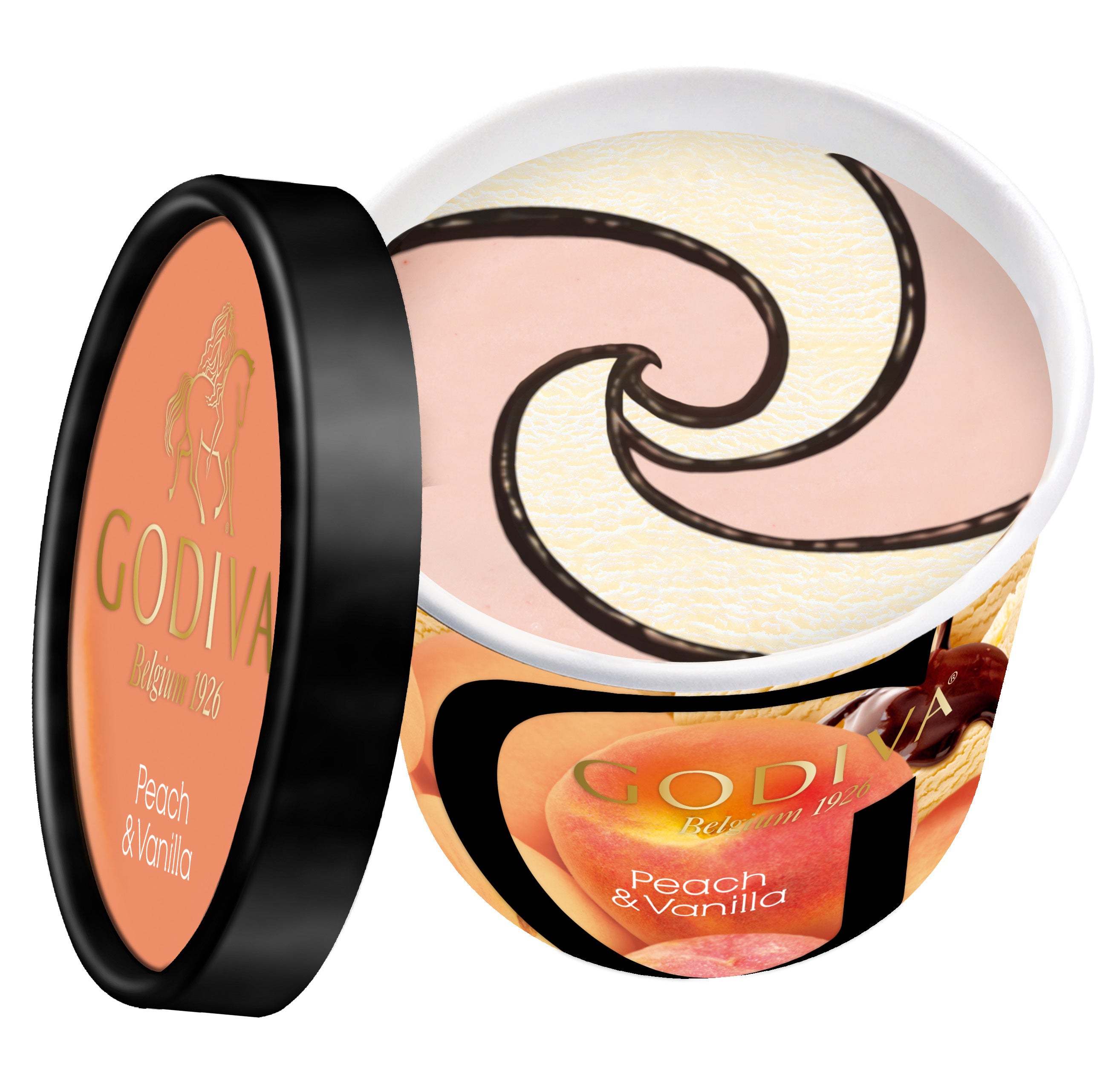 爽やかなピーチ味のアイスクリームと、バニラペーストが入ったコクのあるバニラアイスクリームに、濃厚なチョコレートソースを加えました。爽やかな甘さのアイスクリームと、チョコレートの濃厚さが重なり合い、絶妙なバランスです。