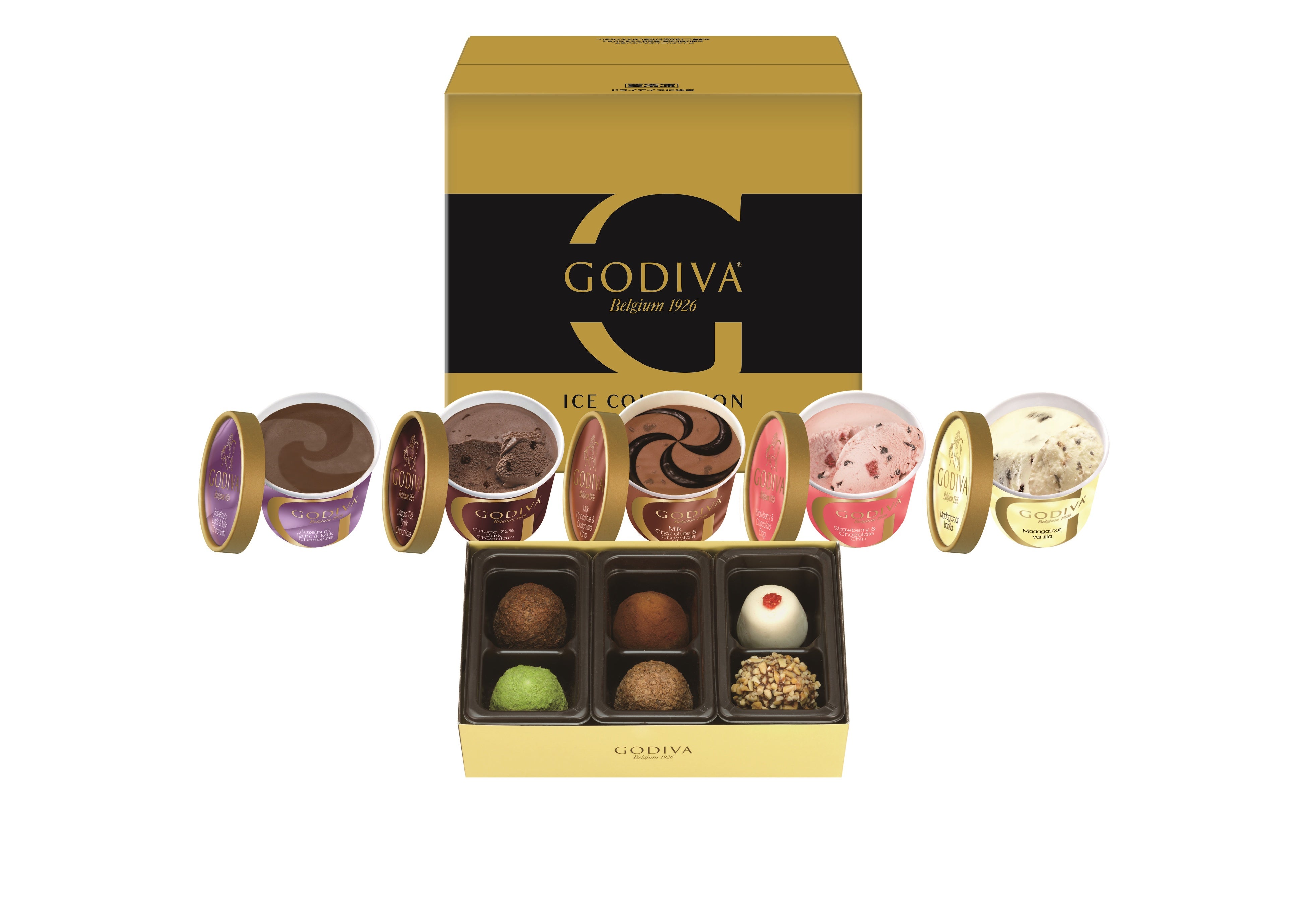 「アイスギフトセット」は、シェフが考案した本格的なレシピによる、定番フレーバーや季節限定フレーバーを詰め合わせ、ゴディバのプレミアムなチョコレートをさまざまなフレーバーのアイスクリームで味わえるセットとなっています。
