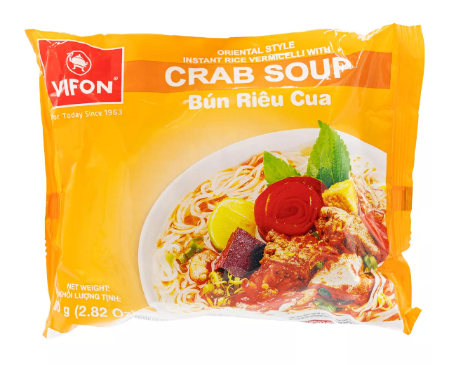 Bun Rieu Cuaというのは、小さなタガニをすりつぶし、炊き上げ漉して作るという、それだけ聞いても気が遠くなるような作業の末にできるスープです。フライオドオニオンや、カニの細かな具材がレトルトパックの中にたくさん入っていて具沢山です。カニ出汁好きの方にはたまりません。