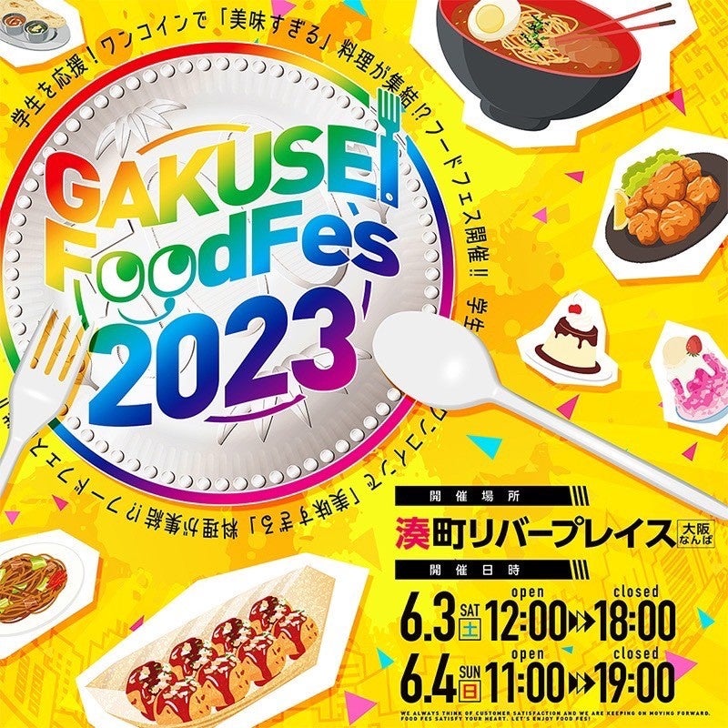 大阪なんばの湊町リバープレイスにて、学生を中心とした若い世代が「共創」し作り上げる『GAKUSEI FoodFes 2023 in 湊町リバープレイス』が開催されます。