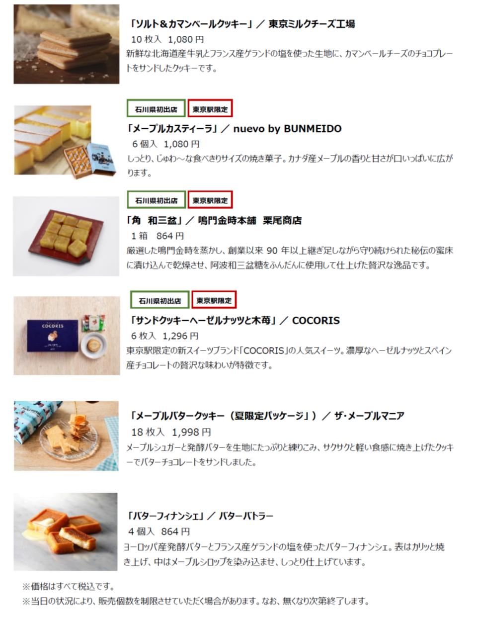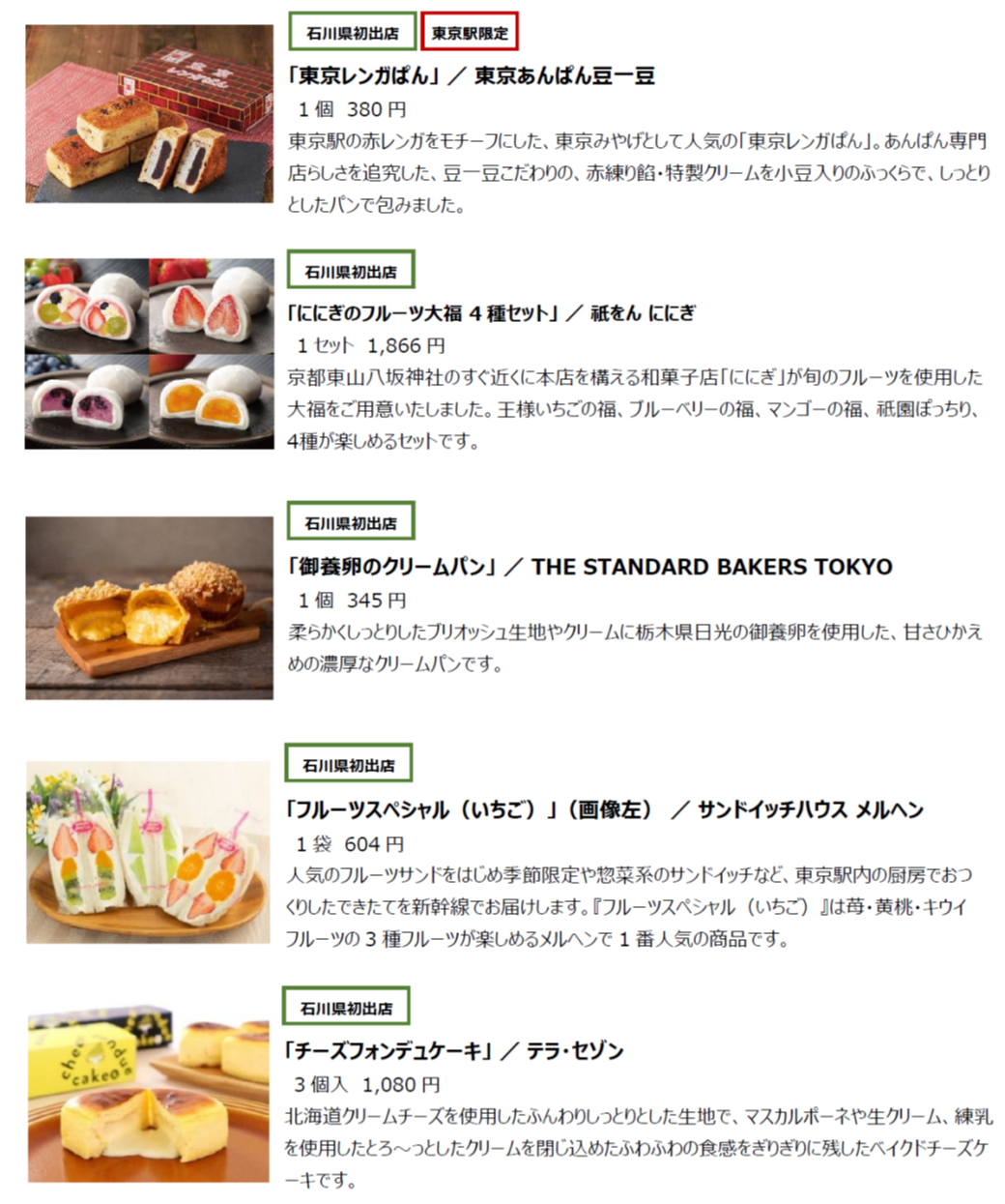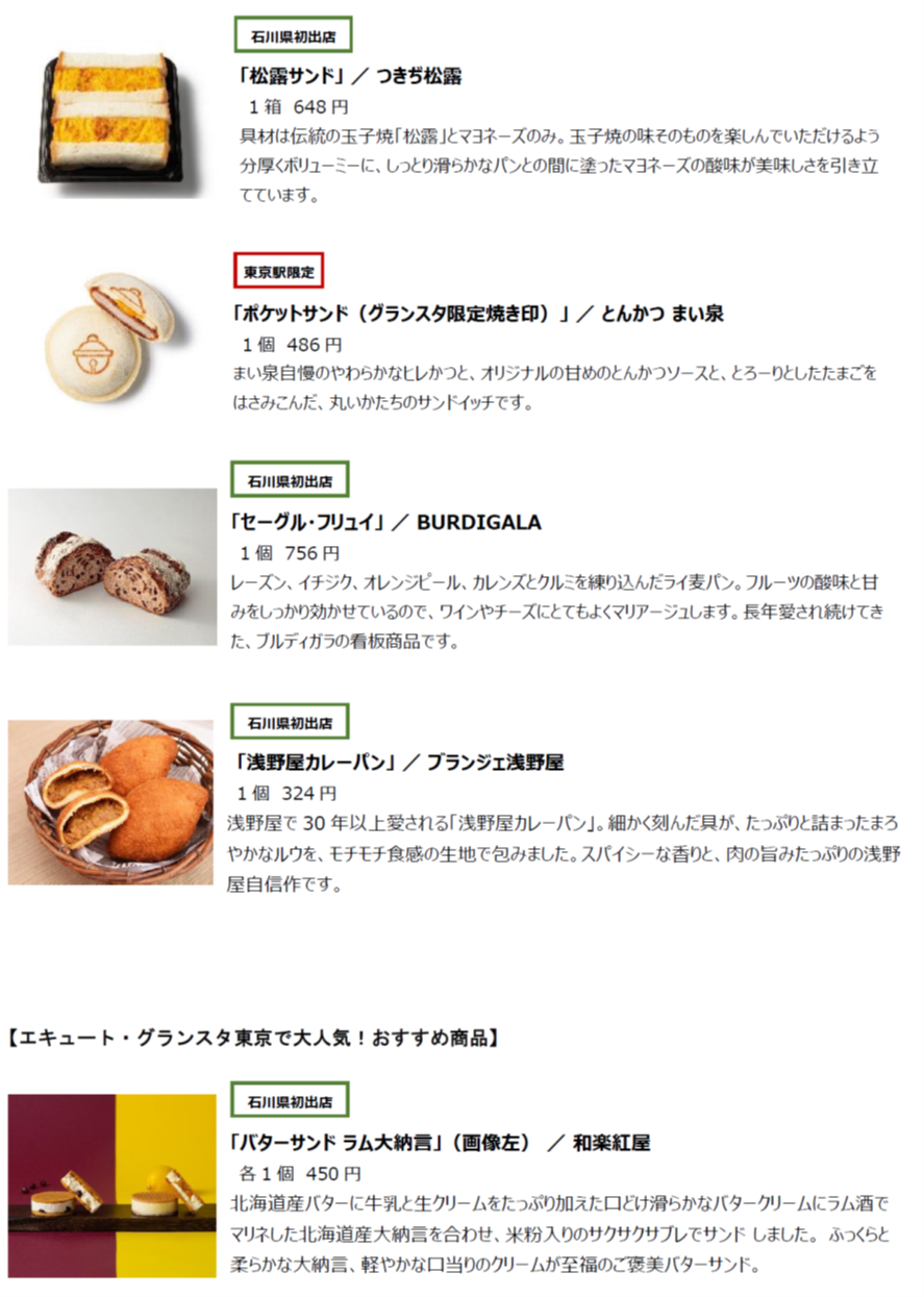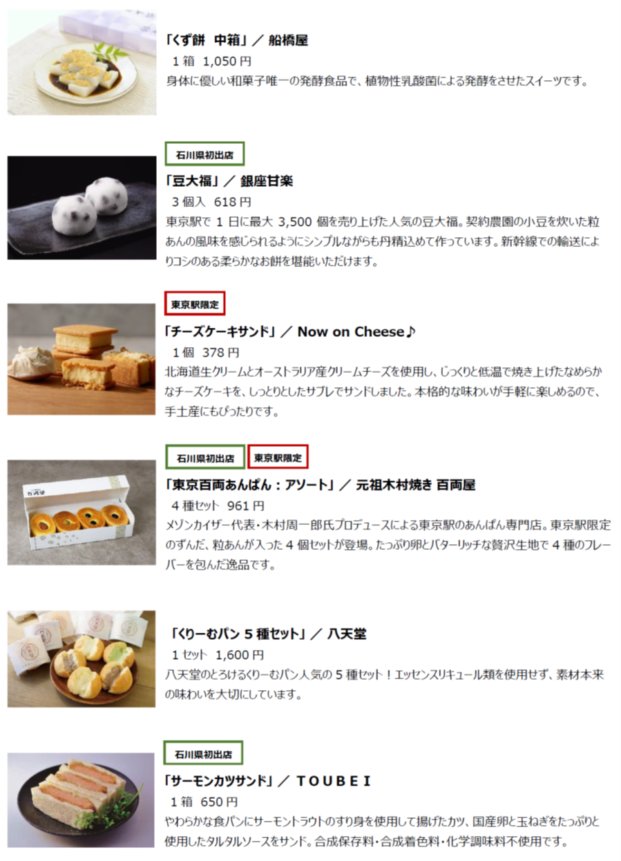 (4) 取扱商品 石川県初登場のブランドや東京駅の人気商品を多数取り揃えます。