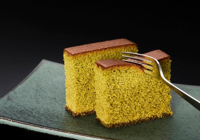 1867年創業の須崎屋は、長崎では上質なカステラの代名詞といえる五三焼(※)を手づくりする老舗。島原半島産の卵、佐賀のもち米飴などを使った清らかな甘さのふっくらとした生地に、鹿児島県産の知覧茶を加えて、淡い緑色の薫り高い一品に仕上げました。厳選した九州産の食材を使った上品な味わいです。
