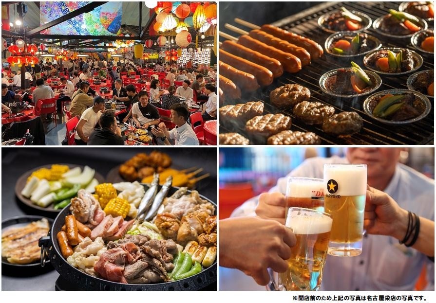 1963年6月(昭和38年)に開業した名古屋が誇る老舗ビアガーデン。100種類以上の食べ飲み放題バイキングや大手4社のビールが飲み放題以外にも、ビジョンを設置したステージでは専属アイドル“マイちゃんアミちゃん”などがパフォーマンスを披露しています。1日の販売量が3,000リットルを記録するなど、男女問わず親・子・孫と三世代を通して名古屋市民に愛されています。60周年を迎える今年は、様々なメディアから取材も殺到し、既に多くの予約で埋まっています。