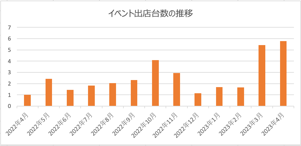※冬シーズンはイベントが減少するため12月~2月は出店台数が例年少なくなります