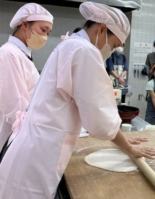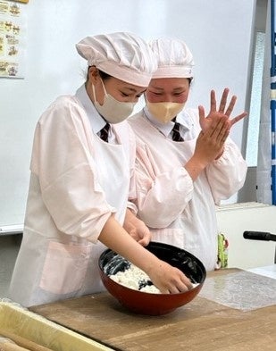 ■もち麦うどん打ちの先生は、県立社高校の生徒たち