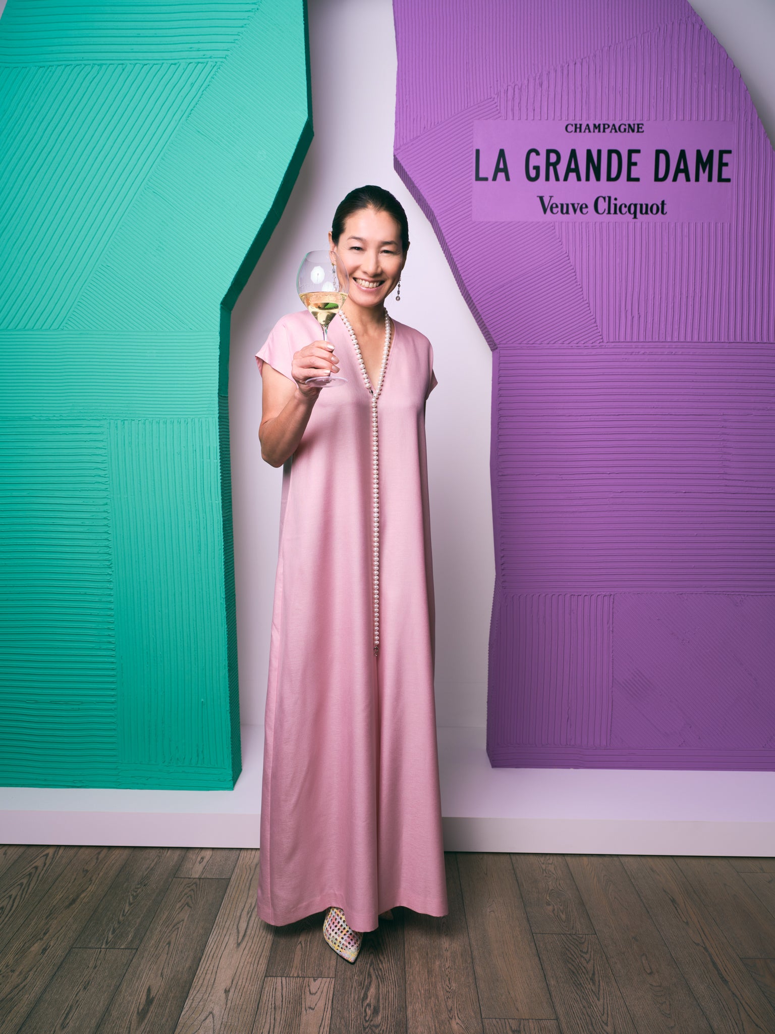 私は、日常でもヴーヴ・クリコを飲む機会がたくさんあるのですが、今回は特別なシャンパーニュである「ヴーヴ・クリコ ラ・グランダム 2015」をいただいて、そのスペシャル感を楽しむことができました。会場の雰囲気も、洗練されたデザインでありながらも、パステルカラーのやわらかい色彩が、フレンドリーな気持ちにさせてくれるので、すごく気持ちが高揚して会話が弾む素晴らしい空間だと思います。