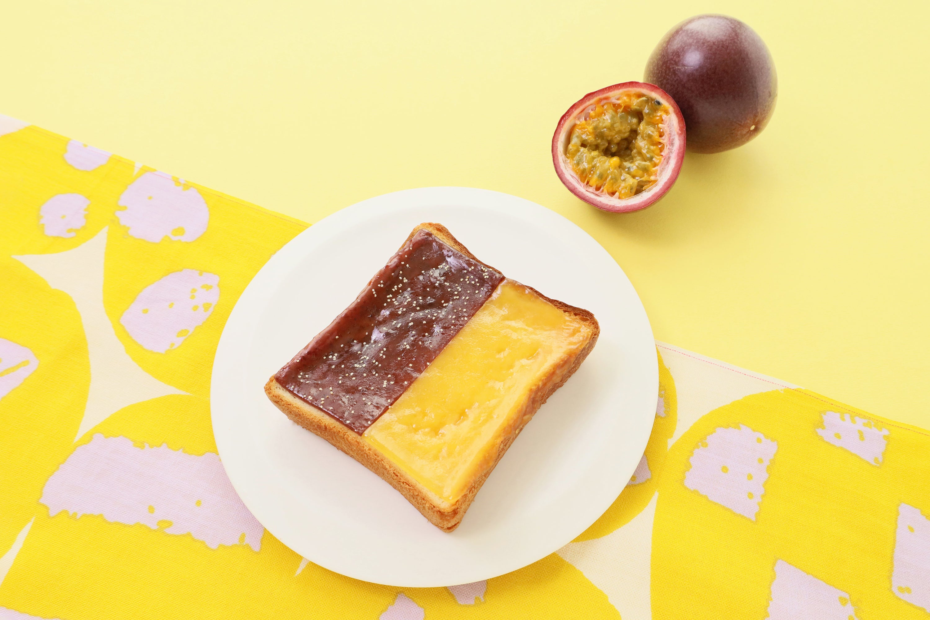 おすすめの焼き加減は、パンがきつね色になり、羊羹がとろりと溶ける頃。パッションフルーツの香りが口いっぱいに広がる、さわやかな酸味と風味をご堪能ください。