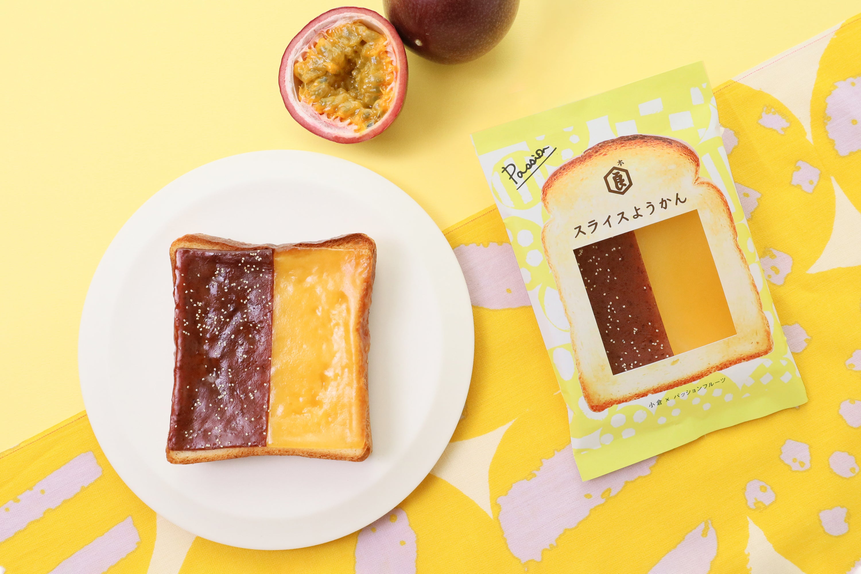 「スライスようかん」は、スライスチーズのようにパンにのせ、トーストして楽しむシート状の羊羹です。これまで54万袋を売り上げた、和菓子屋・亀屋良長の人気商品です。そんな「スライスようかん」に、夏にぴったりな新作フレーバー「スライスようかん パッションフルーツ」が仲間入りしました。