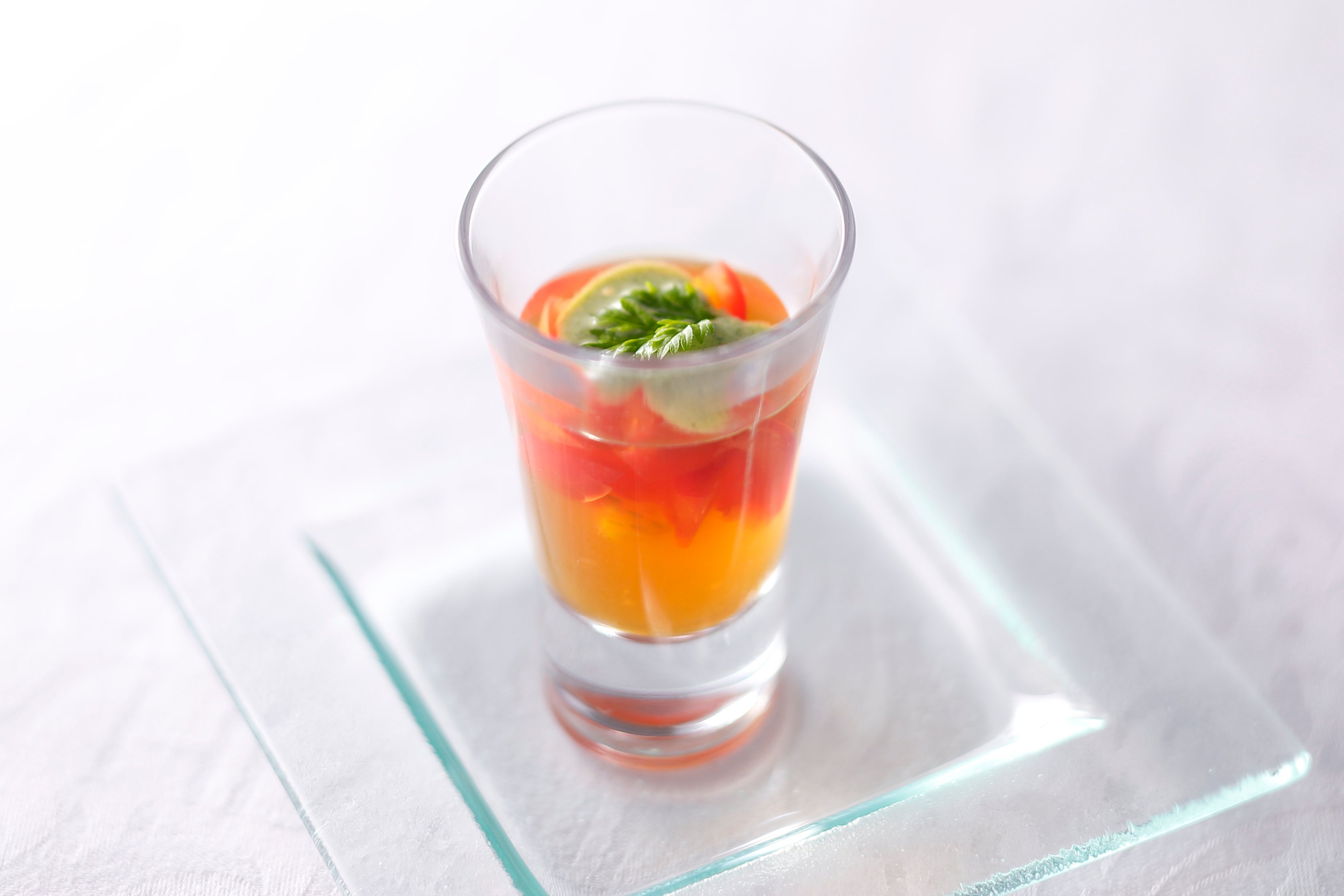 “椿やさい”と季節のフルーツのナージュ レモンソルベを浮かべて