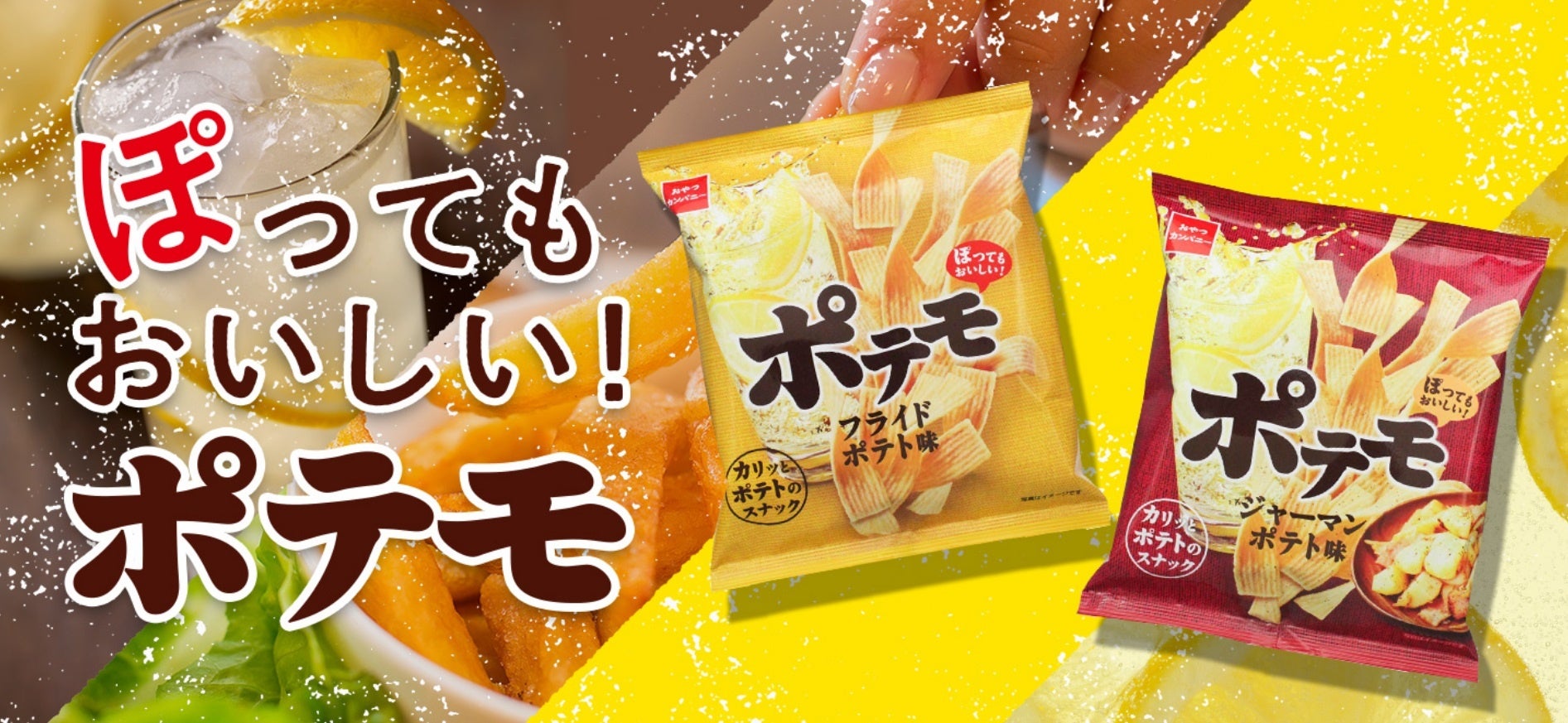 自宅でお酒を飲む”家飲み”の定着とともに、缶チューハイや缶ハイボールなどのRTD(=Ready To Drink)や、のど越し爽やかな強炭酸飲料が人気となっています。そんなシュワッと爽快なのど越しの炭酸系アルコールや炭酸ソフトドリンクとの相性抜群なポテトスナック菓子『ポテモ』に、これからの暑い夏にぴったりな爽やかな味わいの「塩レモン味」が期間限定で登場します。