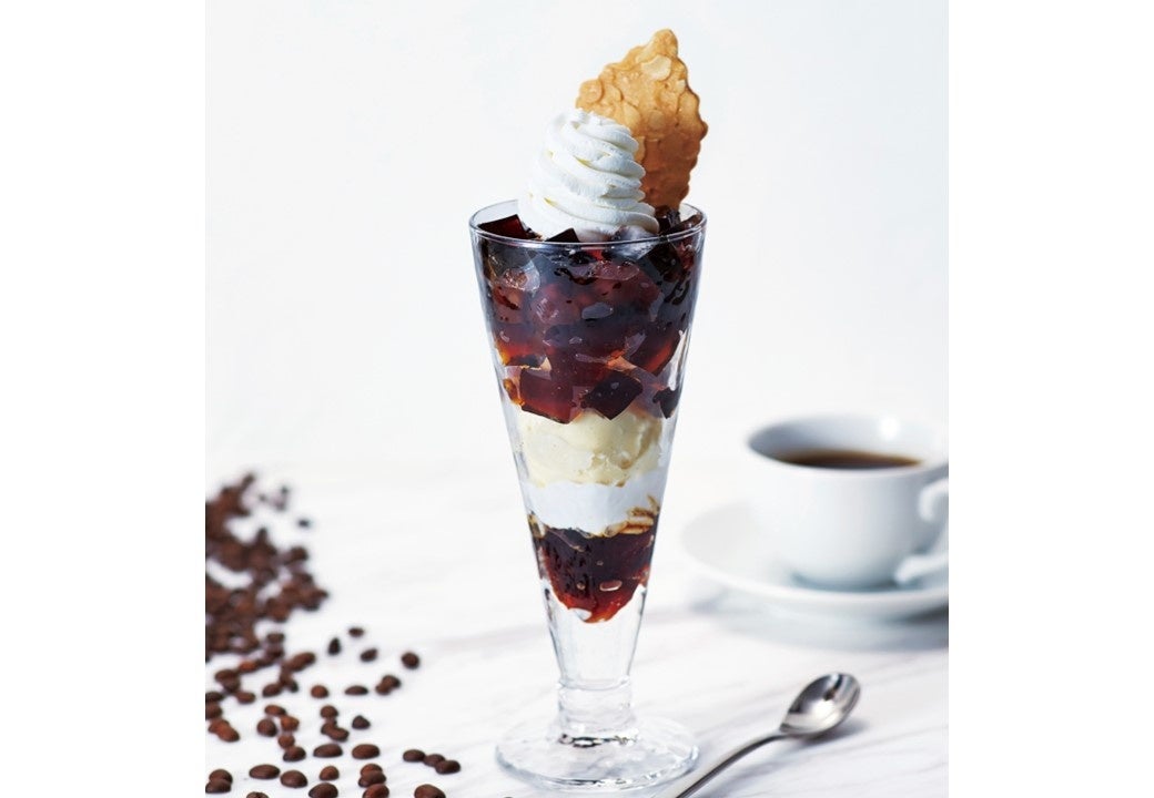 自家製コーヒーゼリーと北海道産小倉あん、バニラアイスクリームで仕立てたパフェです。ぷるんとした食感のコーヒーゼリーに口どけなめらかなバニラアイスクリーム、そして小倉あんが味のアクセントとなってお楽しみいただけます。ほろ苦さと甘さが絶妙に組み合わさった、期間限定のスイーツです。