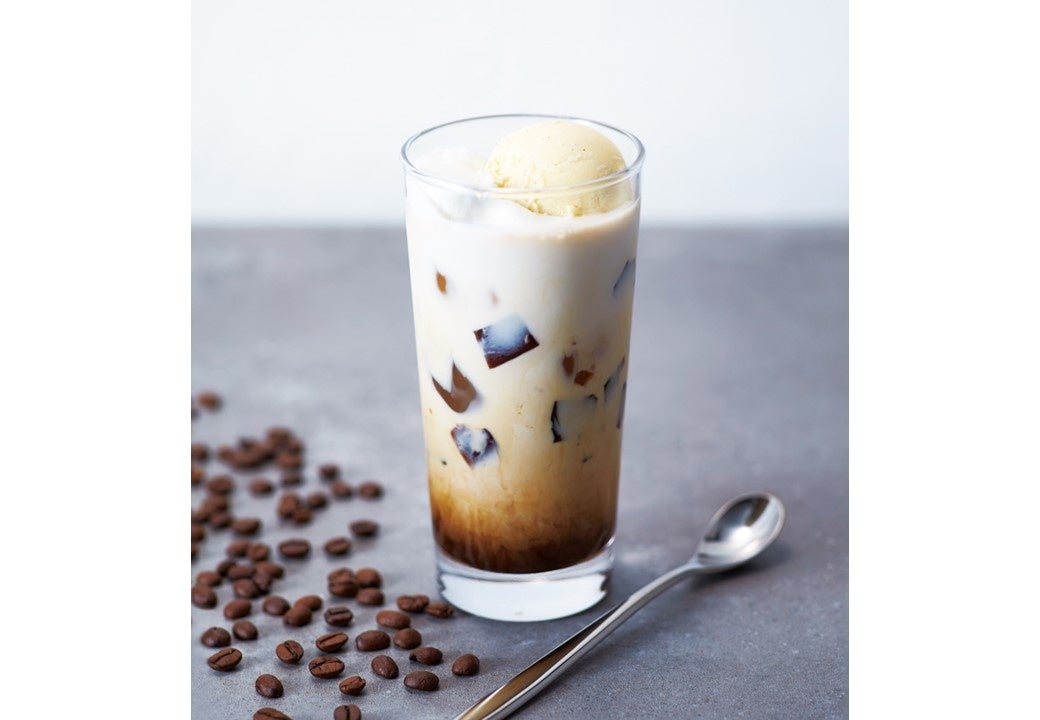 伊江島産の黒糖は、潮風の影響を受けてわずかな塩気がありコクのある優しい甘さで、濃いコーヒーとミルクを引き立てます。ホイップクリームとバニラアイスをトッピングし、ほろ苦いコーヒーゼリーがアクセントのスイーツ感覚ドリンクです。