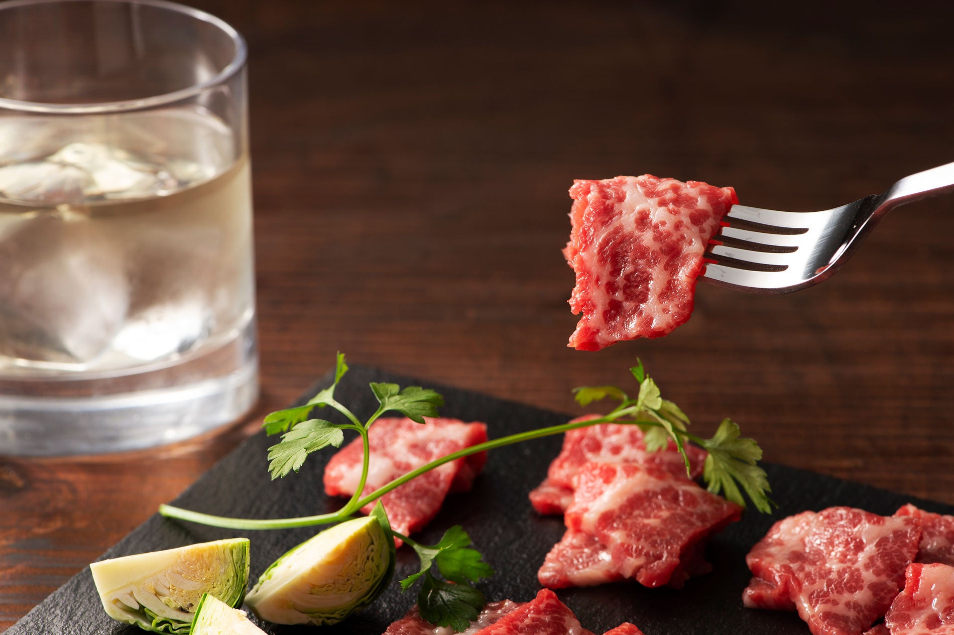 フジチクでは馬にとって最良な環境の自社牧場で約1年間肥育を行い、1日で屠畜・高水準の衛生管理を持つ自社工場で加工・冷凍を行い鮮度の高い馬刺しをお届けしております。そのため赤身はとても味が濃く、きめ細かなサシが入り、脂も甘味があるのがふじ馬刺しの特徴でもあります。