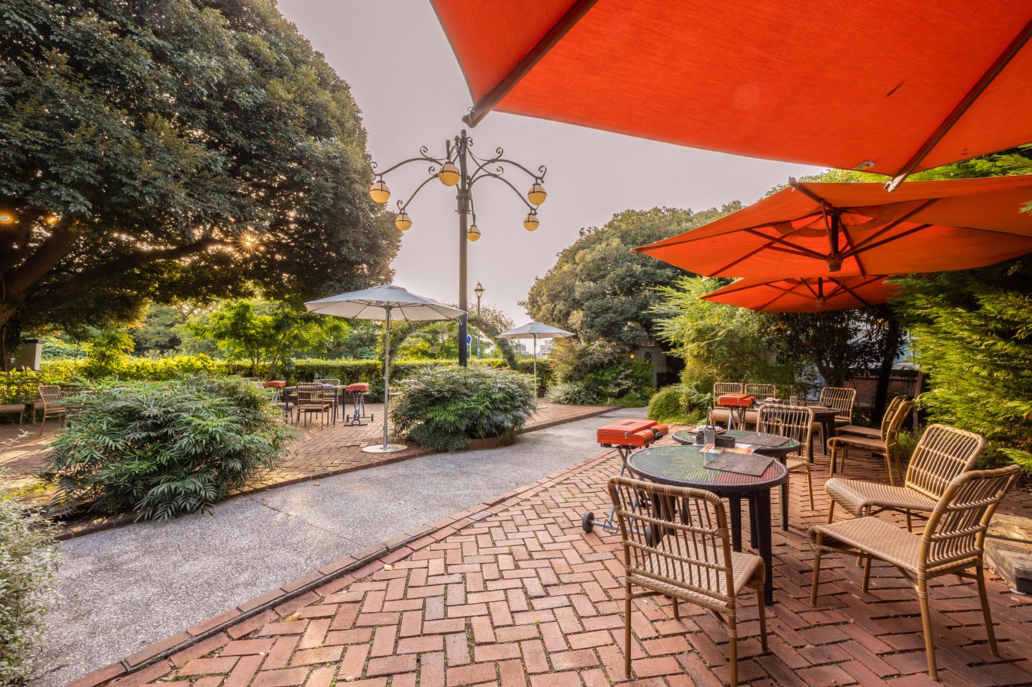 ・夕方から夜にかけては、横浜の歴史を見つめてきた由緒ある商館のガーデンならではの落ち着いた空間で優雅なひとときを味わえる