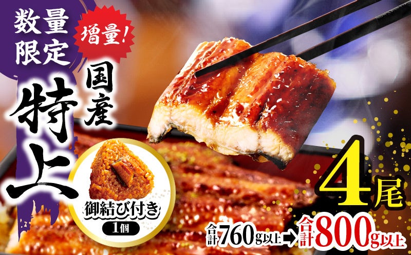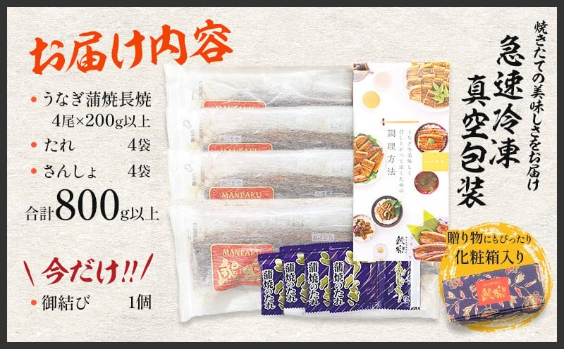 ・うなぎ蒲焼長 4尾×200g以上 (合計800g以上)