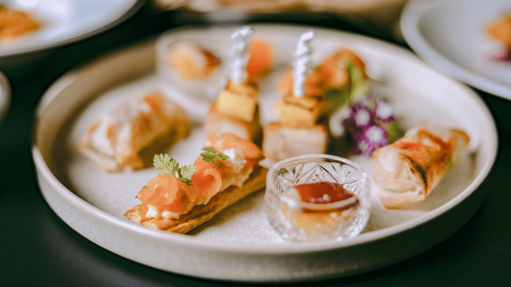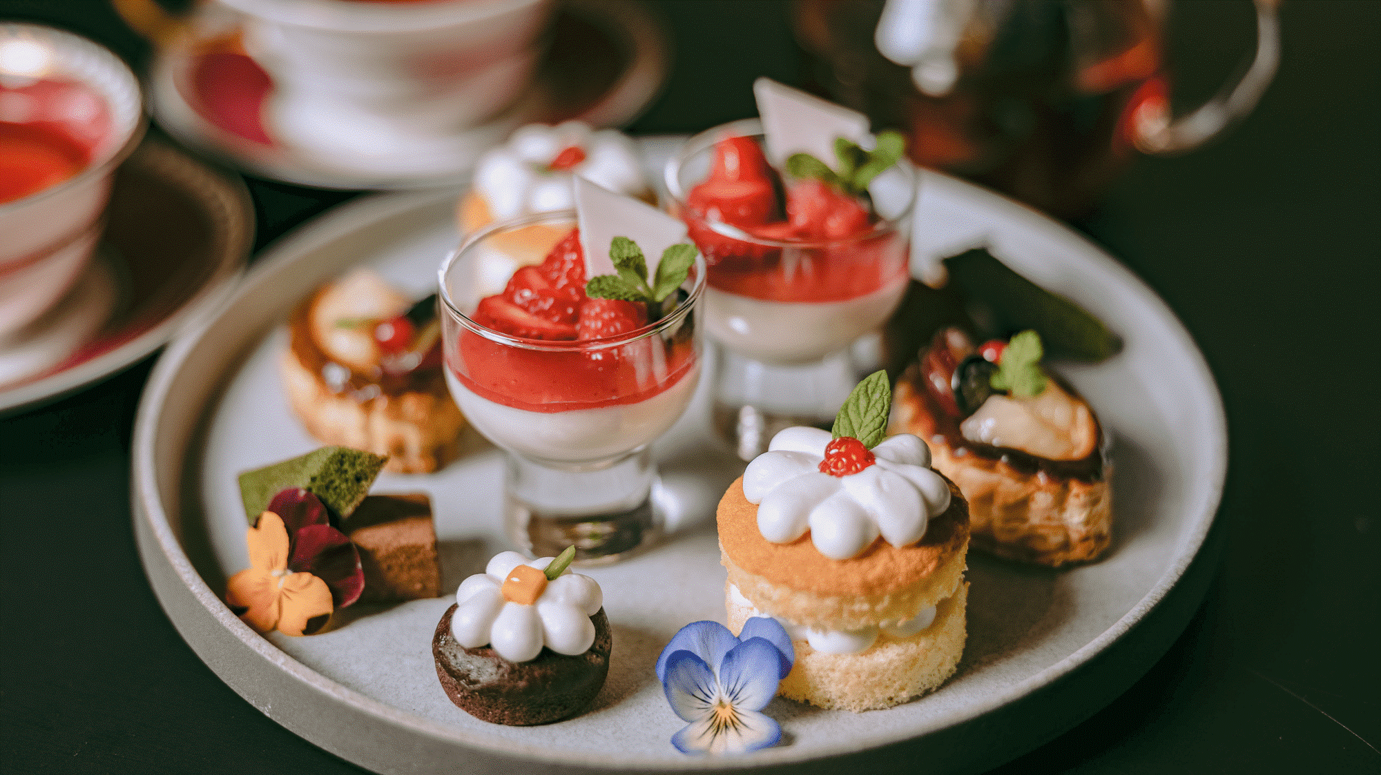 レッドフランマのHigh Tea ~夜のアフタヌーンティー~では、華やかなオードブル、さまざまな食感が楽しいホテルメイドのスイーツ、レッドフランマ自慢の熔岩石グリラーで焼き上げる柔らかくジューシーなお肉料理、季節替わりのパスタをご用意いたします。