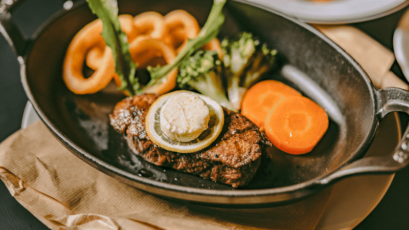 ・ミスジ肉の桜島溶岩石グリル フライオニオン添え