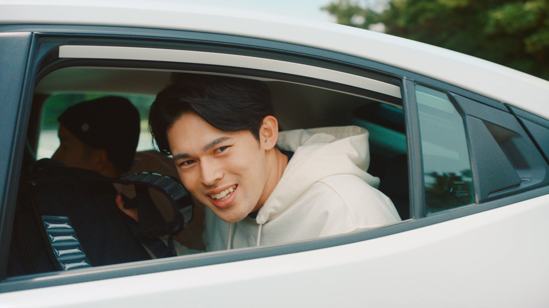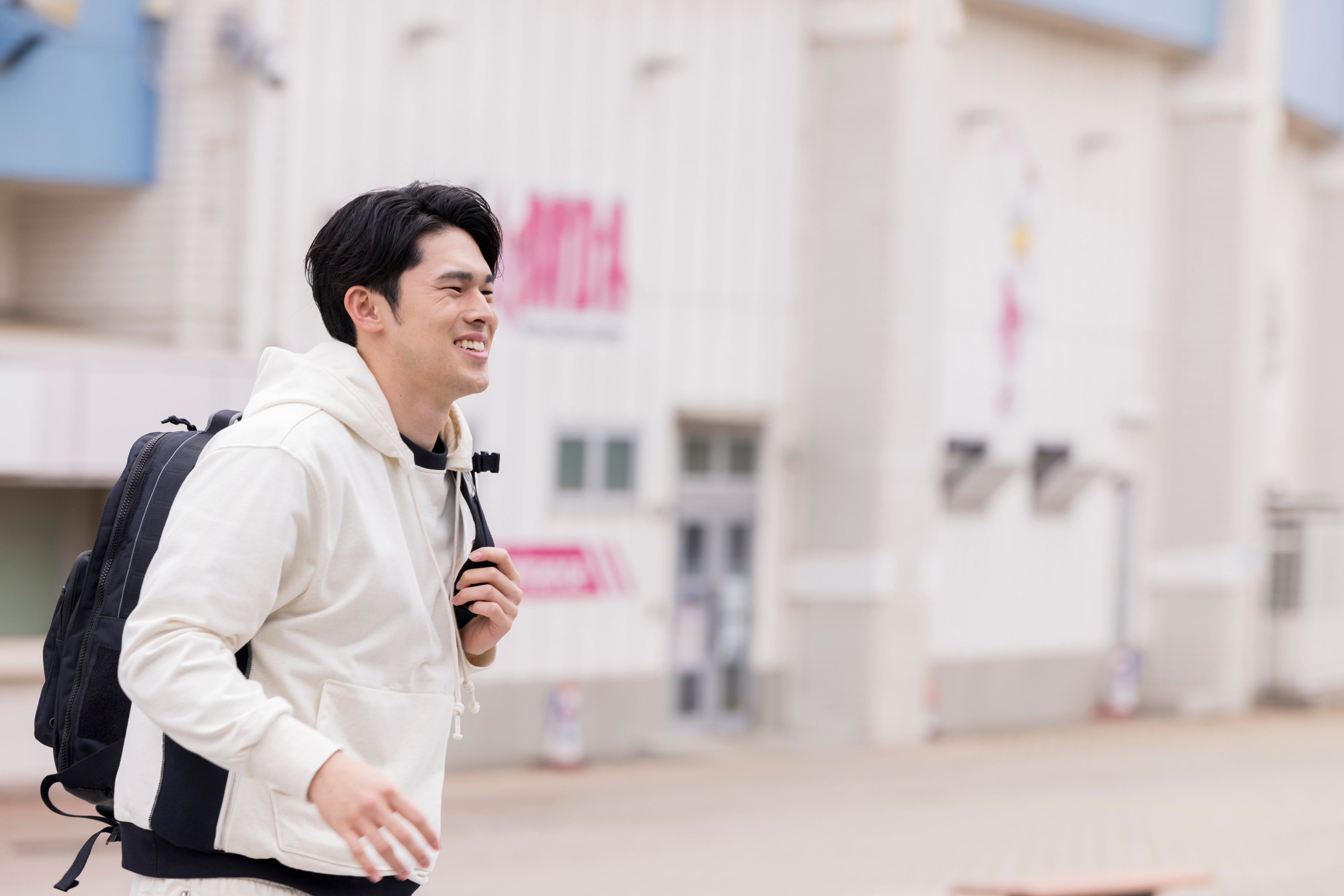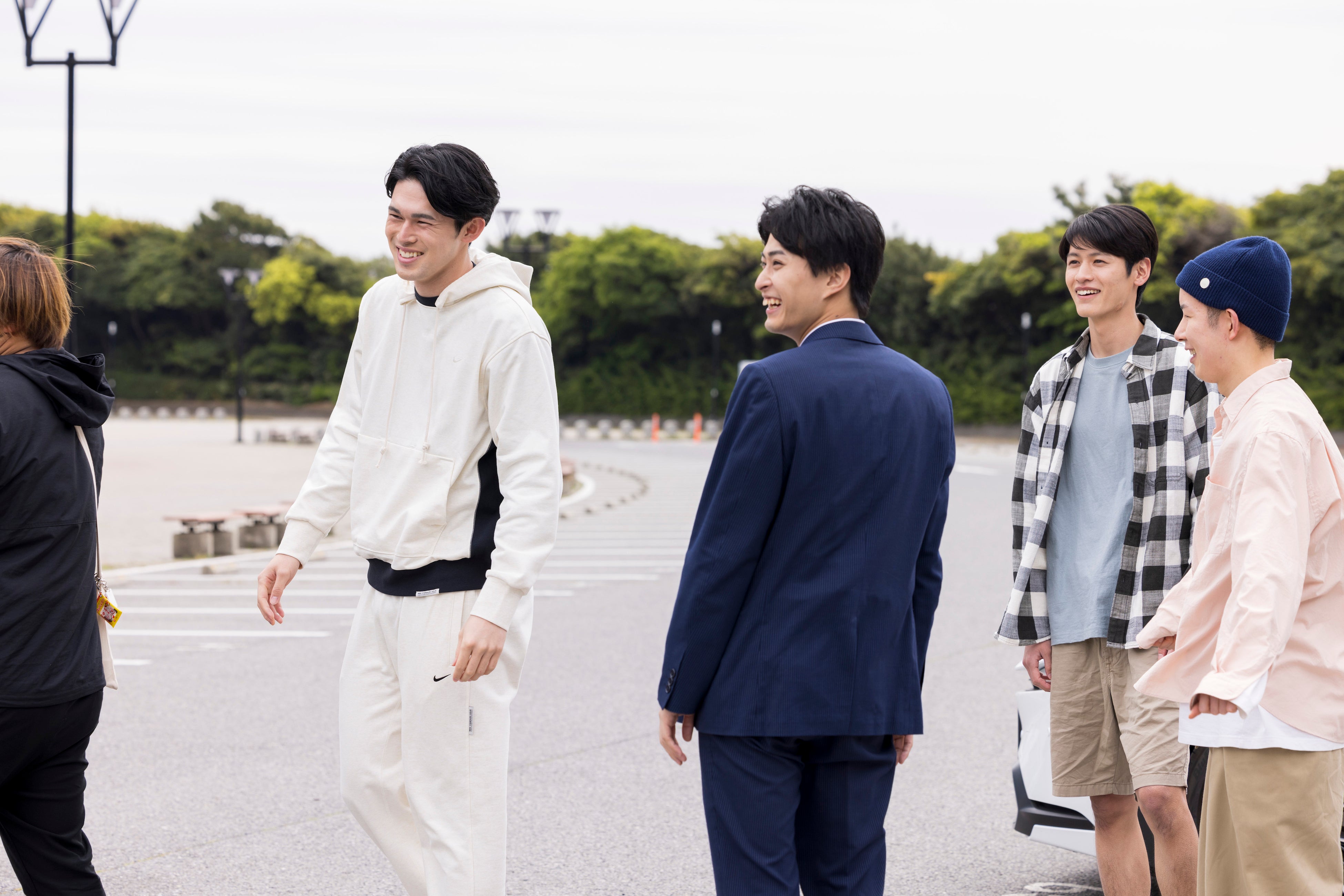 インタビュー内で「恥ずかしかったです(笑)」と語っていたのが、駐車場で友人たちと合流するシーン。友人を見つけて 「おっ」とウキウキした表情を浮かべることも、「おーい!」と手を振りながら駆け出すことも、もちろん演技としては初めて。「正解が分からなくて(笑)」と照れて思わず飛び出した本音。監督や友人役の方々と、撮影の合間に楽しくコミュニケーションをとりながら、一生懸命に撮影に臨んだ佐々木選手でした。