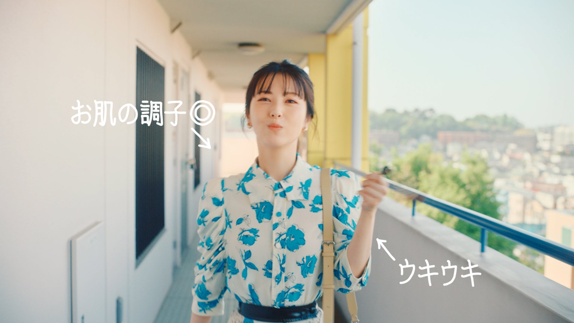 幸せを噛みしめながら歩き進めると、視線の先には待ち合わせ場所に到着している友人たちが。ガムを出し、くるっと包み、大きく手を振りながら満面の笑みで、勢いよく友人たちのもとへ駆け寄る浜辺さん。パッと一瞬立ち止まり、Uターンしてカメラの前に戻ってひとこと「今日は誰に会いに行く?」颯爽と、再び友人たちのもとへ走り寄っていくのでした。いってらっしゃい!