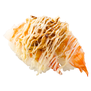 旨味たっぷりの車えびに相性ぴったりなほろ苦い焦がしねぎとまろやかなマヨネーズをトッピングしてご用意しました。