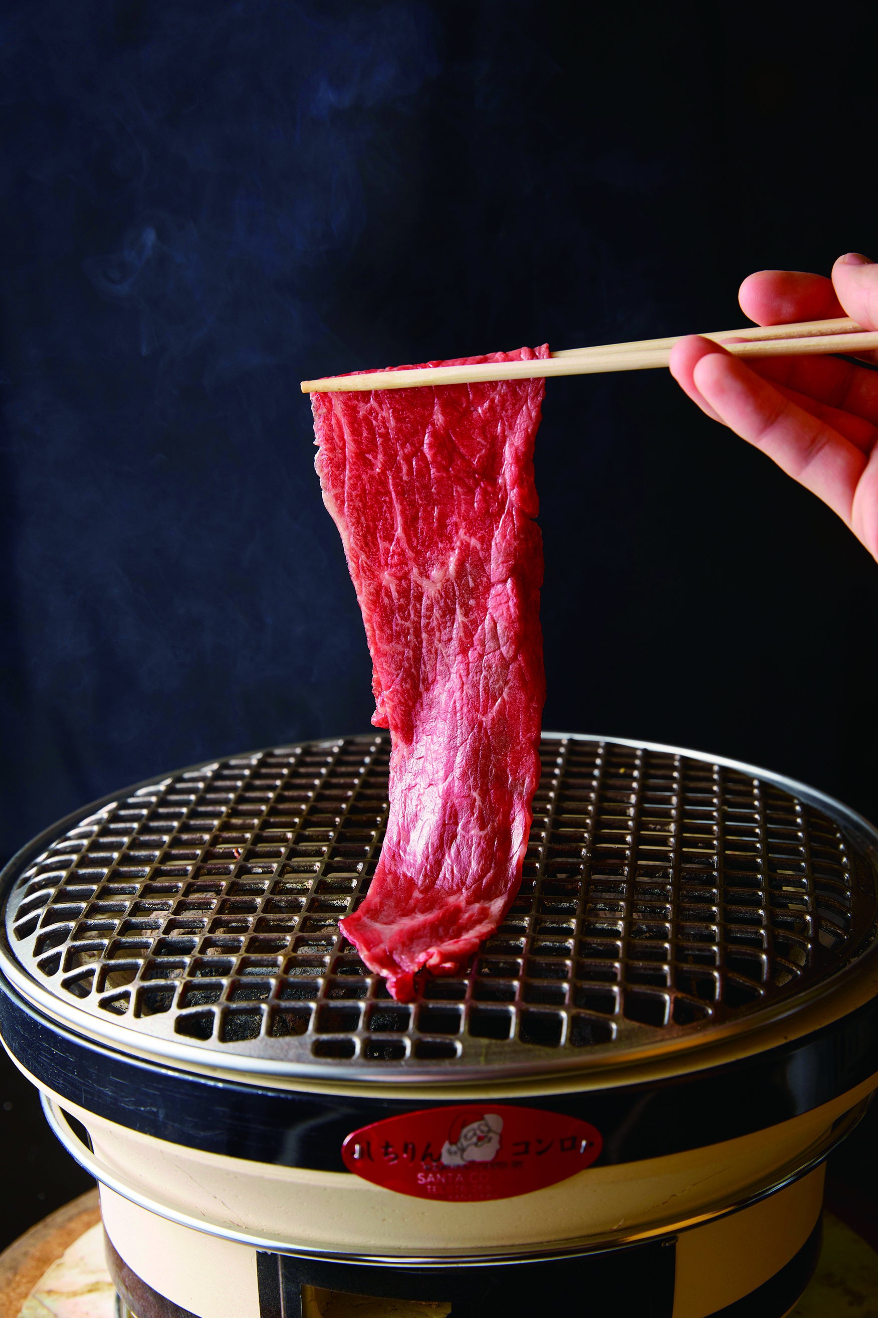 近江牛のバラ肉の中でも、厳選した上モノ部位である、「カイノミ、フランク、インサイド、タテバラ」のみを使用。秘伝の揉みダレを組み合わせることで、とてつもない旨味が出てくるのが特徴です。