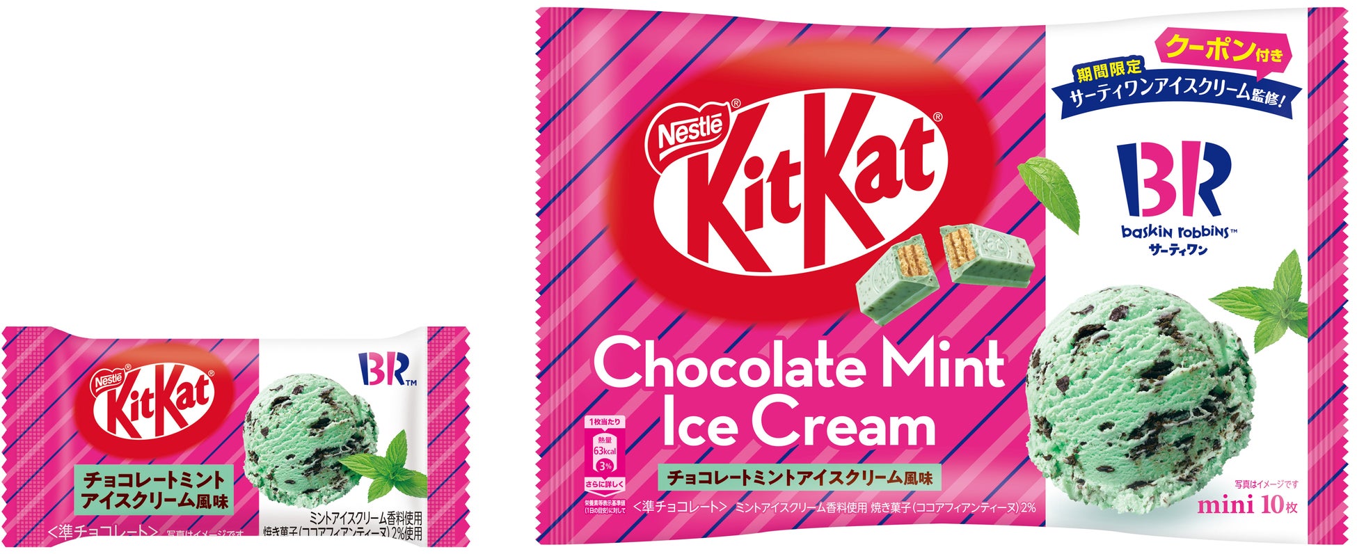 ■サーティワンの大人気フレーバー“チョコレートミント”が「キットカット」に!大袋タイプには、サーティワンで使える50円引きクーポンが付いてくる!