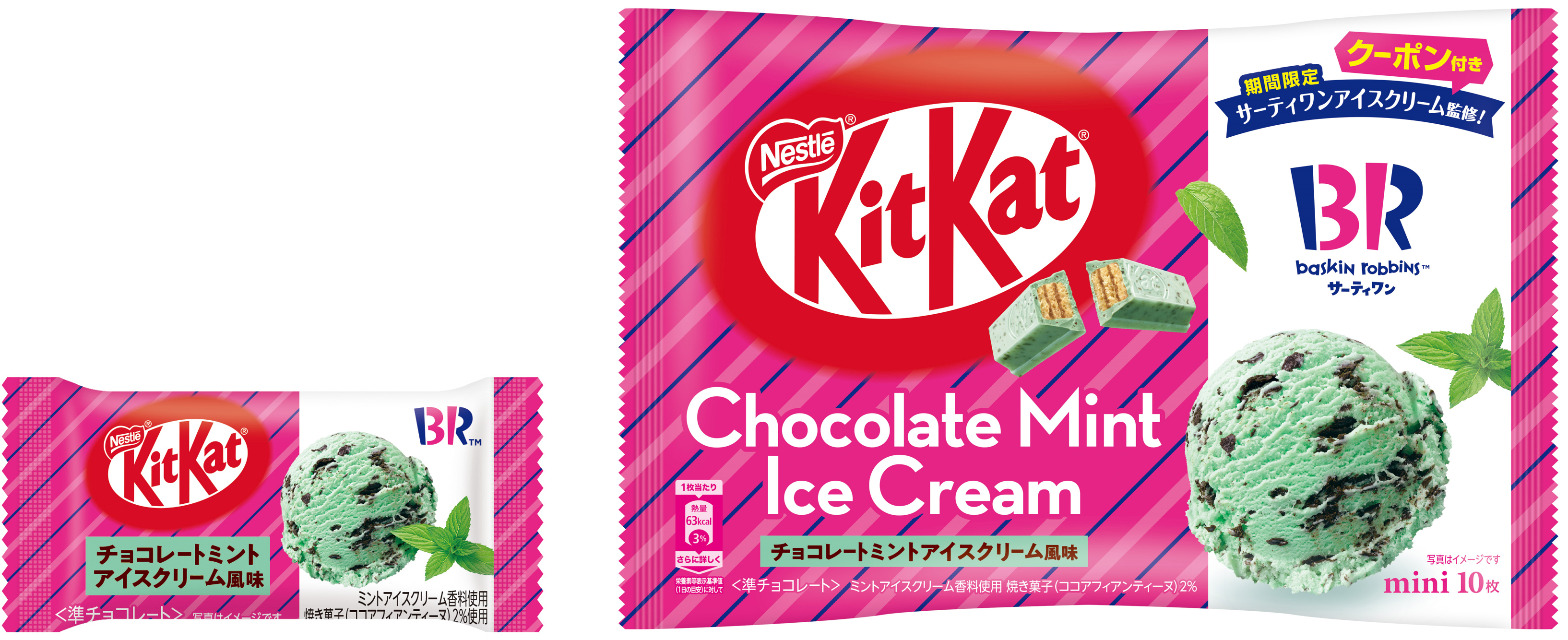 ■サーティワンの大人気フレーバー“チョコレートミント”が「キットカット」に!大袋タイプには、サーティワンで使える50円引きクーポンが付いてくる!