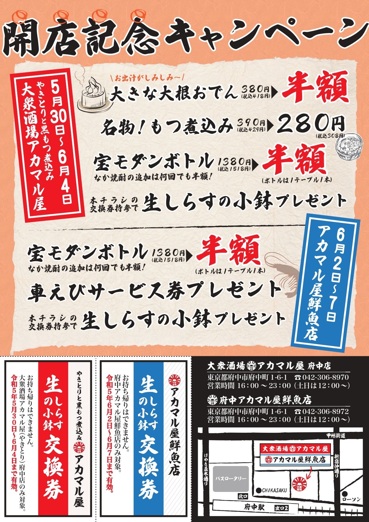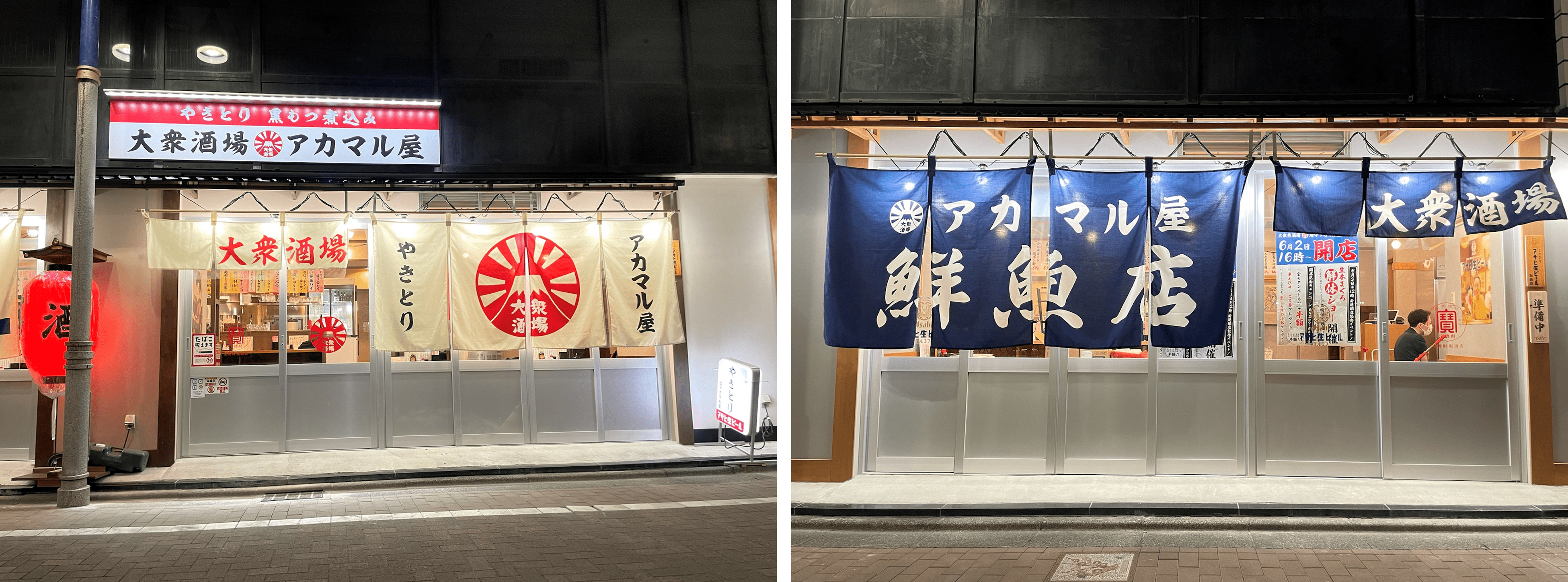 (左:アカマル屋府中店 右:アカマル屋鮮魚店 府中店)